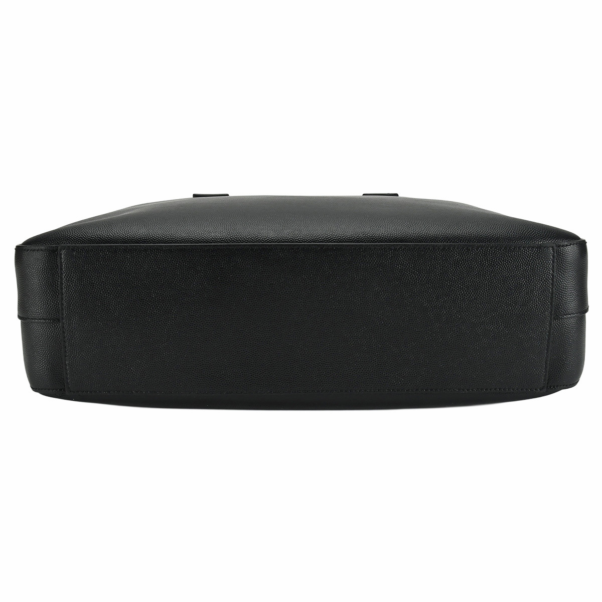 上質なブラックレザーにフロントの型押しロゴが映えるおしゃれな逸品です。 A4サイズの書類やノートPCなどがすっきりと収納でき、複数のポケットを備えたデザインで、整理整頓しやすい使い勝手抜群のアイテムです。 シンプルなデザインのため、ビジネスシーンにピッタリなブリーフケースです。 |