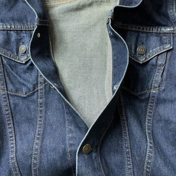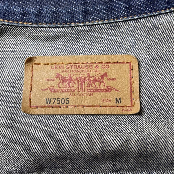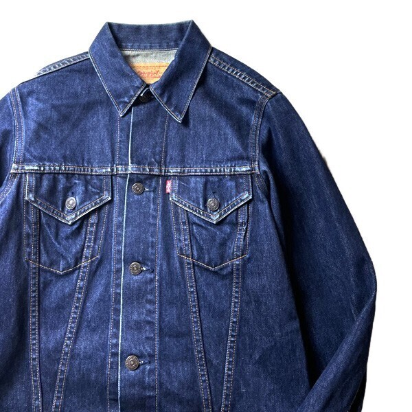 名作! 90s 日本製 Levi's リーバイス W7505 ヴィンテージ トラッカー デニムジャケット Gジャン 濃い濃い 濃紺 Mサイズ レディース 古着