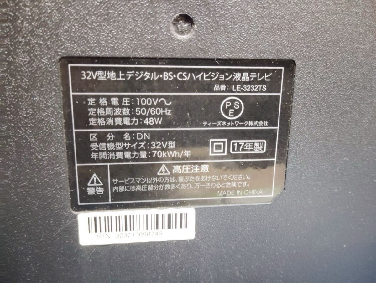 | 商品詳細 | ◯G9956 TEES ハイビジョン 32V型 液晶テレビ LE-3232TS ◯ |
