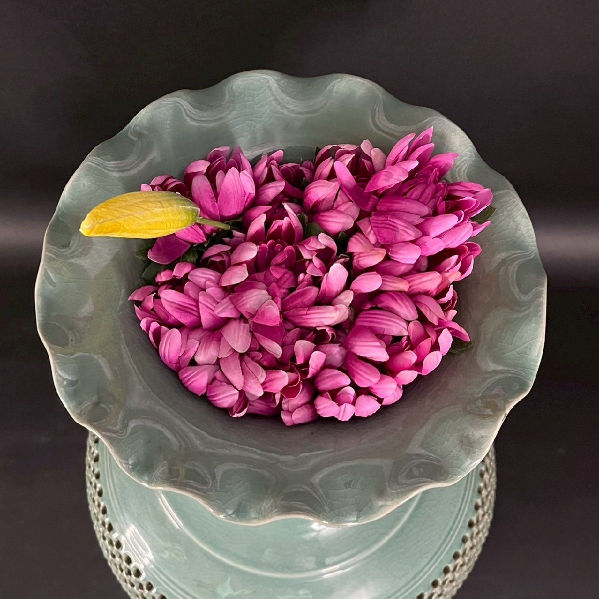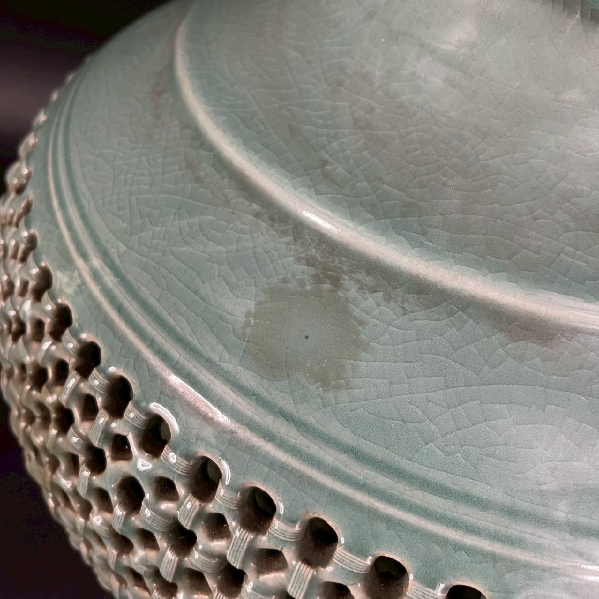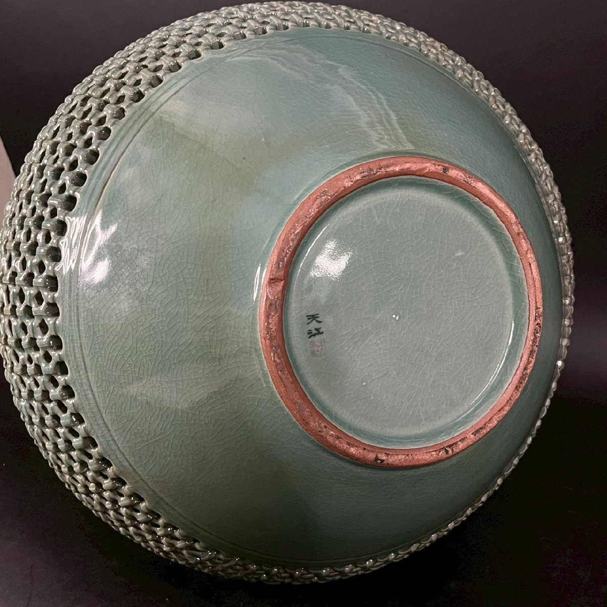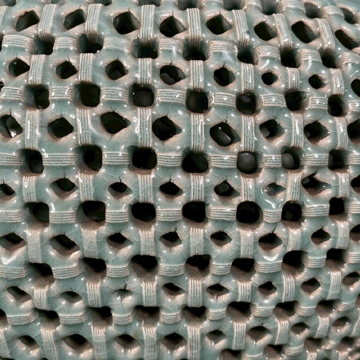 OM0811-2‐3 大型 花瓶 花器 高麗 青磁 陶器 陶芸 透かし彫り 雲 鶴 天江 置物 伝統 工芸 骨董品 造花 高さ61㎝ 口径13㎝ 佐川180サイズ