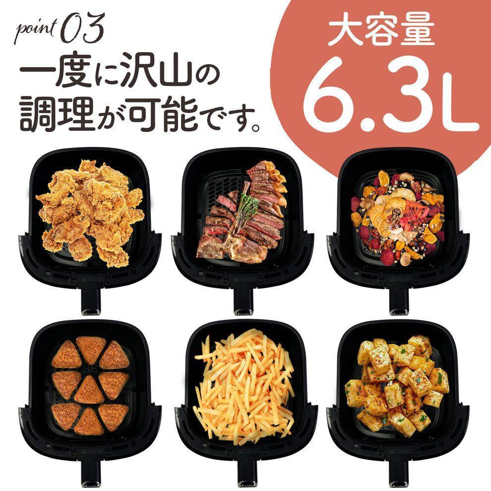 6.3Lの大容量で、トーストからステーキまで調理可能なCrispio製ノンフライヤー。