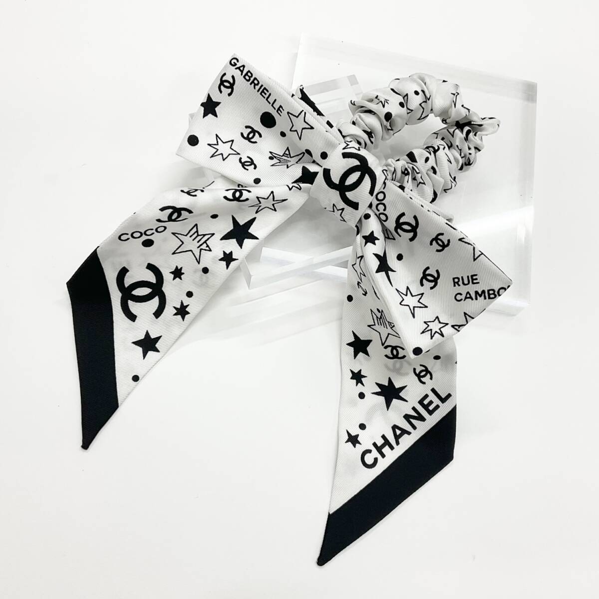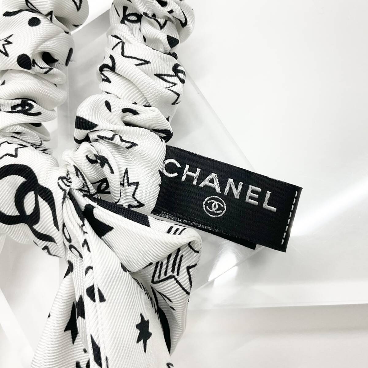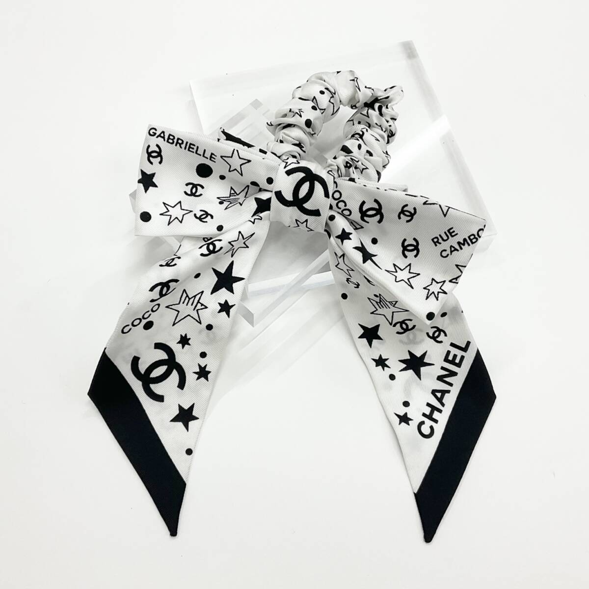 シャネル ココマーク ロゴ リボン シルク シュシュ ヘアゴム ブラック ホワイト