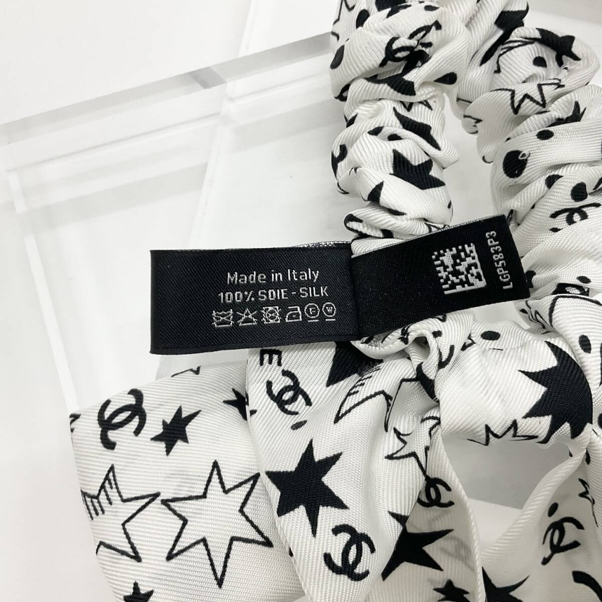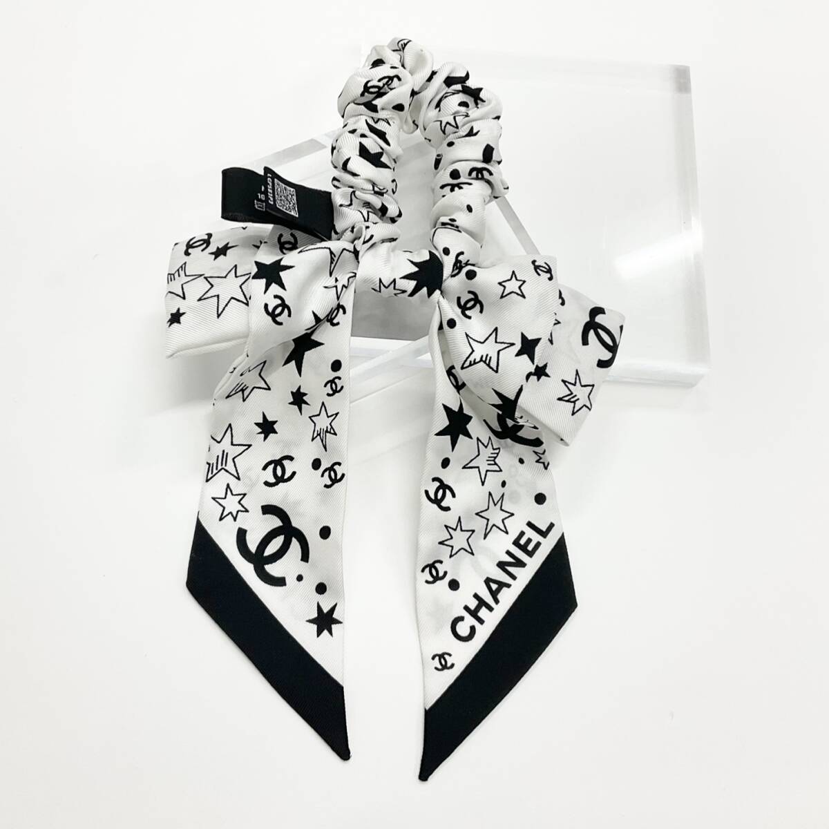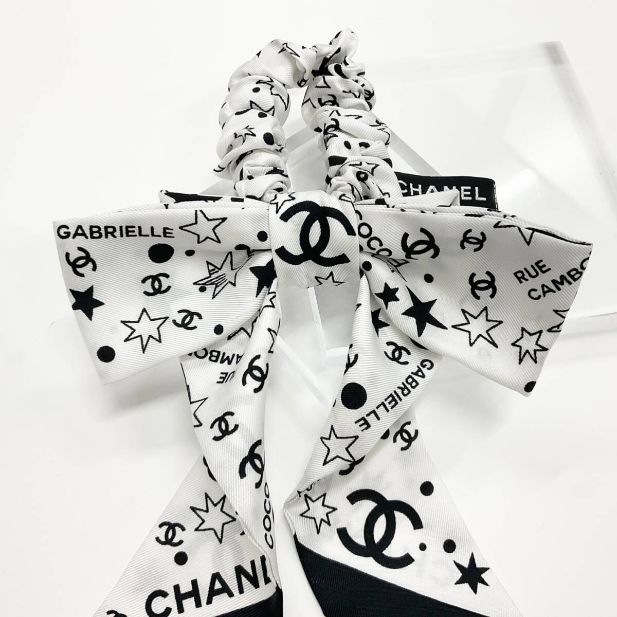シャネル ココマーク ロゴ リボン シルク シュシュ ヘアゴム ブラック ホワイト