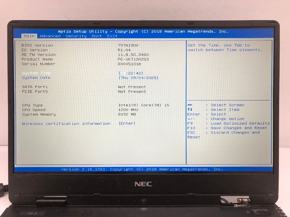 ジャンク/ NEC PC-VKT12HZG3 Intel Core i5-7Y54 メモリ8.19GB ストレージ無し 【K20739】
