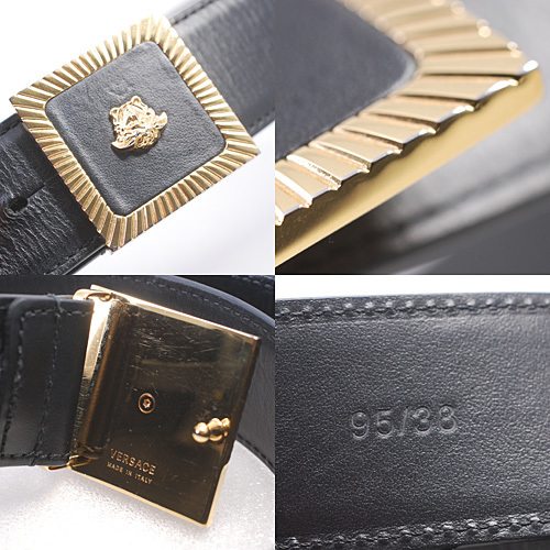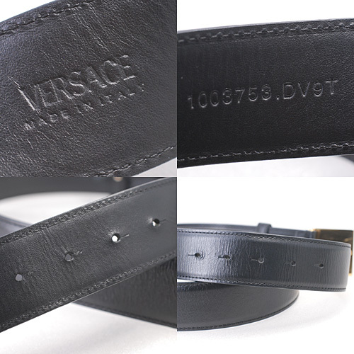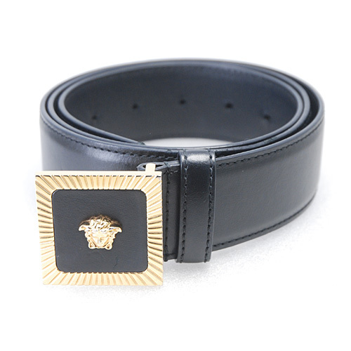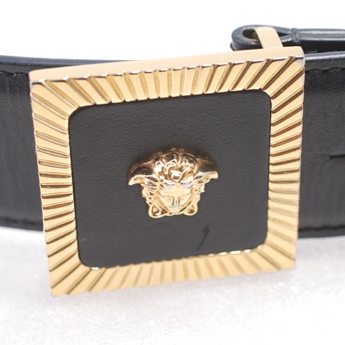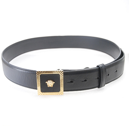 立体的なメデューサが、エレガントに引き立った、VERSACE メデューサ バックル ブラックレザー ベルト。