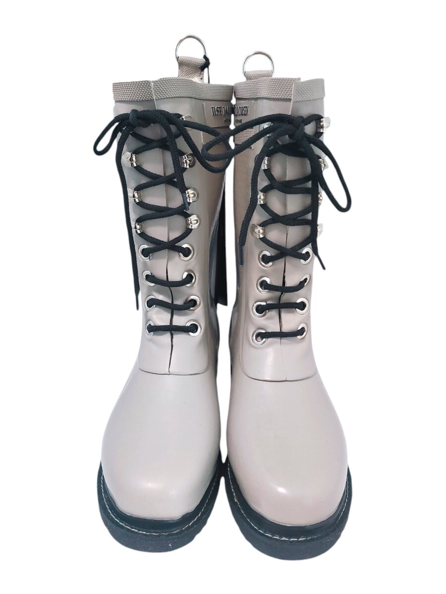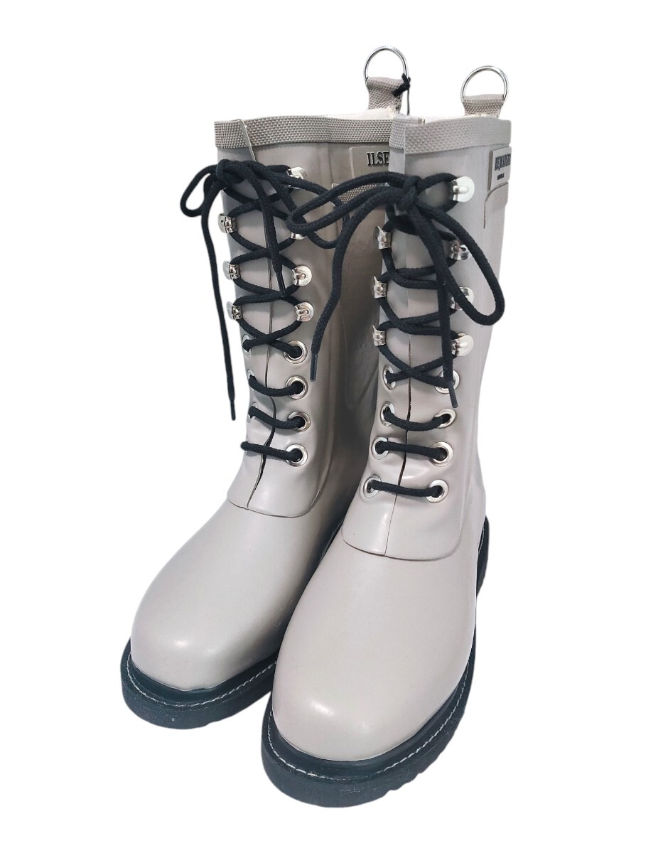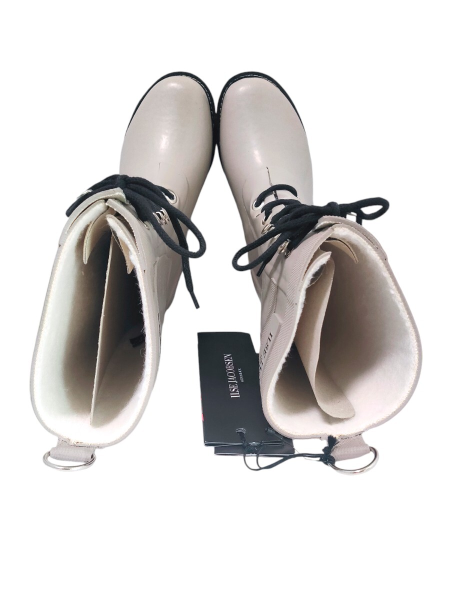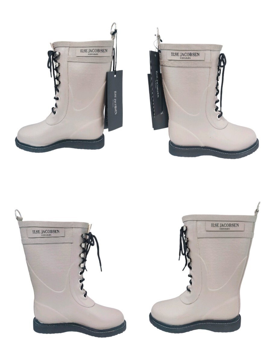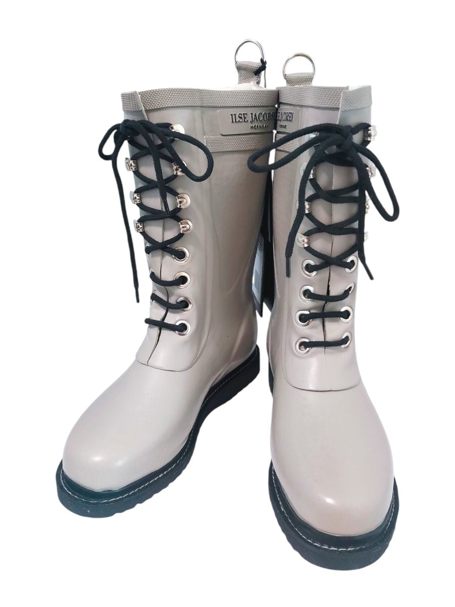 箱付き・タグ付き ILSE JACOBSEN レインブーツ ミドル丈 レースアップ ベージュとグレーの間ぐらいのカラー 23.0cmの新品未使用品です。
