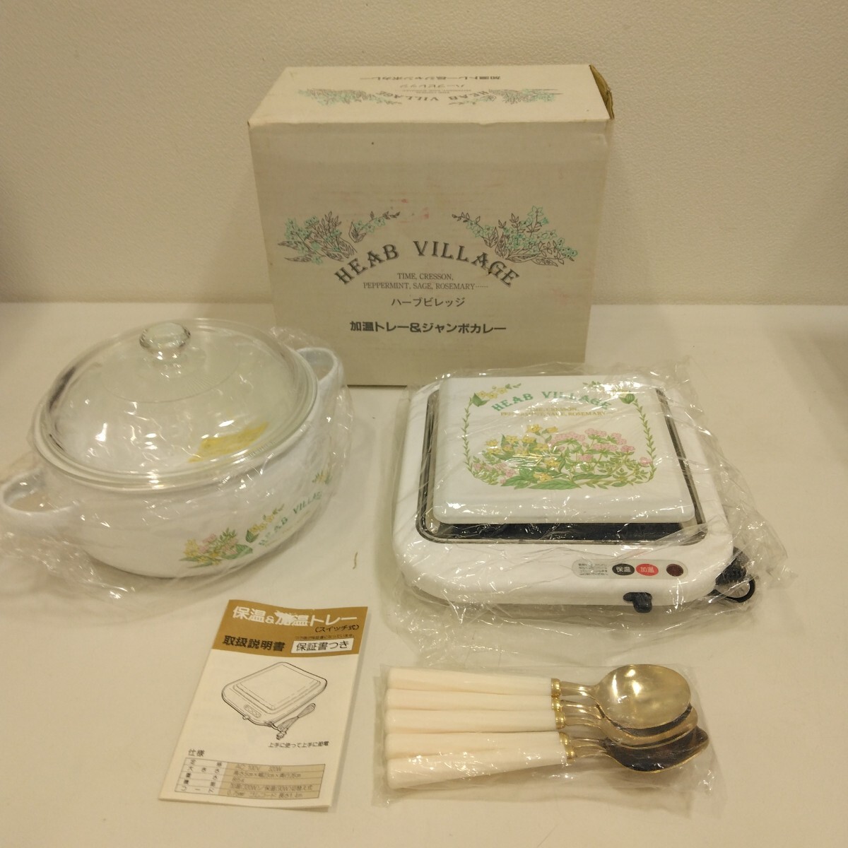 未使用保管品 HEAB VILLAGE ハーブビレッジ 加温トレー&ジャンボカレー 加熱トレー 卓上鍋 両手鍋 通電確認済み スプーン付き