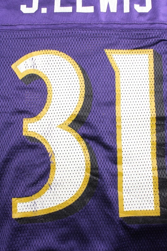 ■ブランド名 Reebok ■商品名 J.Lewis モデル ■色 紫 ■表記サイズ M ■実寸サイズ(cm) 肩幅/裄丈 58(肩先~肩先/後ろ側襟付け根~袖先) 身幅 57(脇~脇) 着丈 79(後ろ側襟付け根~裾) 袖丈 29(肩~袖先) 多少の誤差はご了承ください。あくまで目安としてお考えください。 ■商品状態 着用感ありますが穴や破れなどのダメージはありません。 プリントにハゲがあります。 ■コメント ボルチモア・レイブンズの#31のJamal Lewisモデルになります。 IMG_0848 ・・・・・・・・・・・・・・・・・・・・・・・・・・・・・・・・・ ●素人採寸ですので、多少の誤差はご容赦ください。 ●中古商品の為、写真だけでは説明しきれていないモノや商品説明以外に見落としているキズなどある場合がありますが現状を優先させて頂きます。ご了承ください。 ●着用に問題があるレベルのものは記載しますが、保管&収納時に出来る折じわや畳みじわなど特に記載しません。基本的には写真にてご判断ください。 ●動作環境によって色合いや風合いが変わることもありますが現状を最優先させていただきます。 ●出品物のほとんどが海外で購入の古着になります。 ●古着特有の風合い(又はビンテージとしての価値)を損なう恐れがある為、基本的に当方ではクリーニング致しておりません。 古着特有の汚れ、匂いなど気になる方は御自身で洗濯クリーニングをお願いします。 ・・・・・・・・・・・・・・・・・・・・・・・・・・・・・・・・・ ■送料:全国一律¥880(※沖縄県への発送は出来ませんので入札されてお支払いされてもキャンセルいたします) 発送地について:商品の発送は代理業者(minikura)に委託している為、発送地は宮城県の寺田倉庫からの発送になります。 同日落札に限り最大120サイズまで同梱可能ですので薄手の物や小物などは複数落札すると送料がかなりお得になります。 | |||