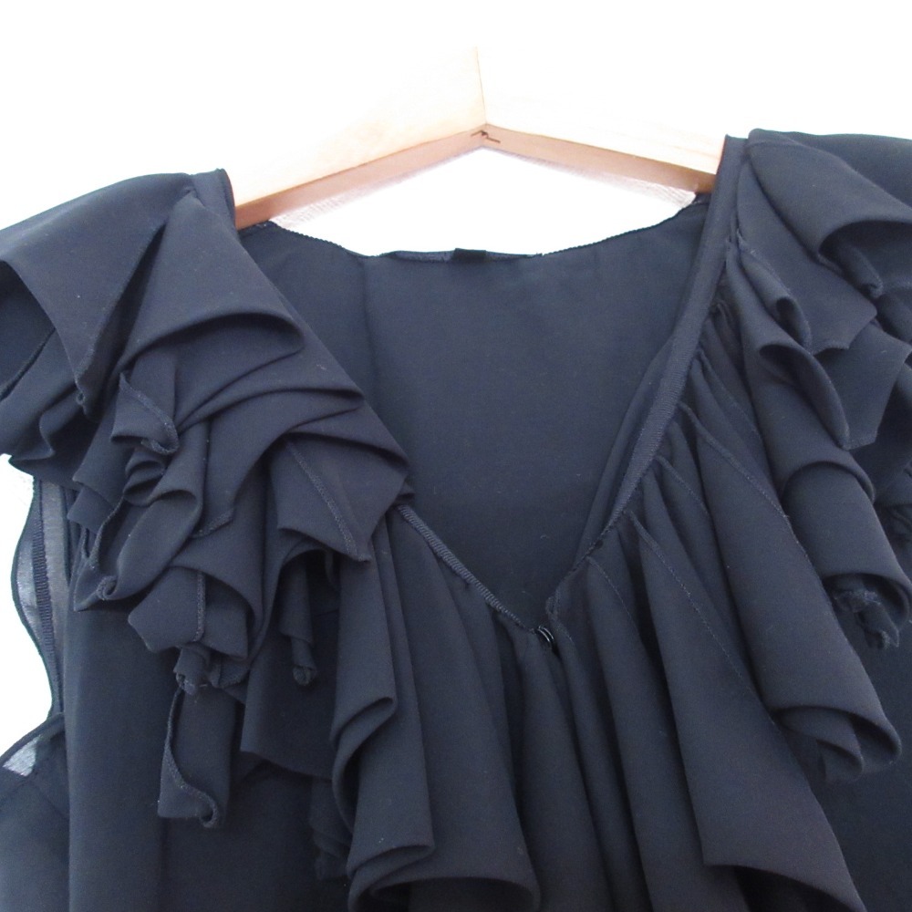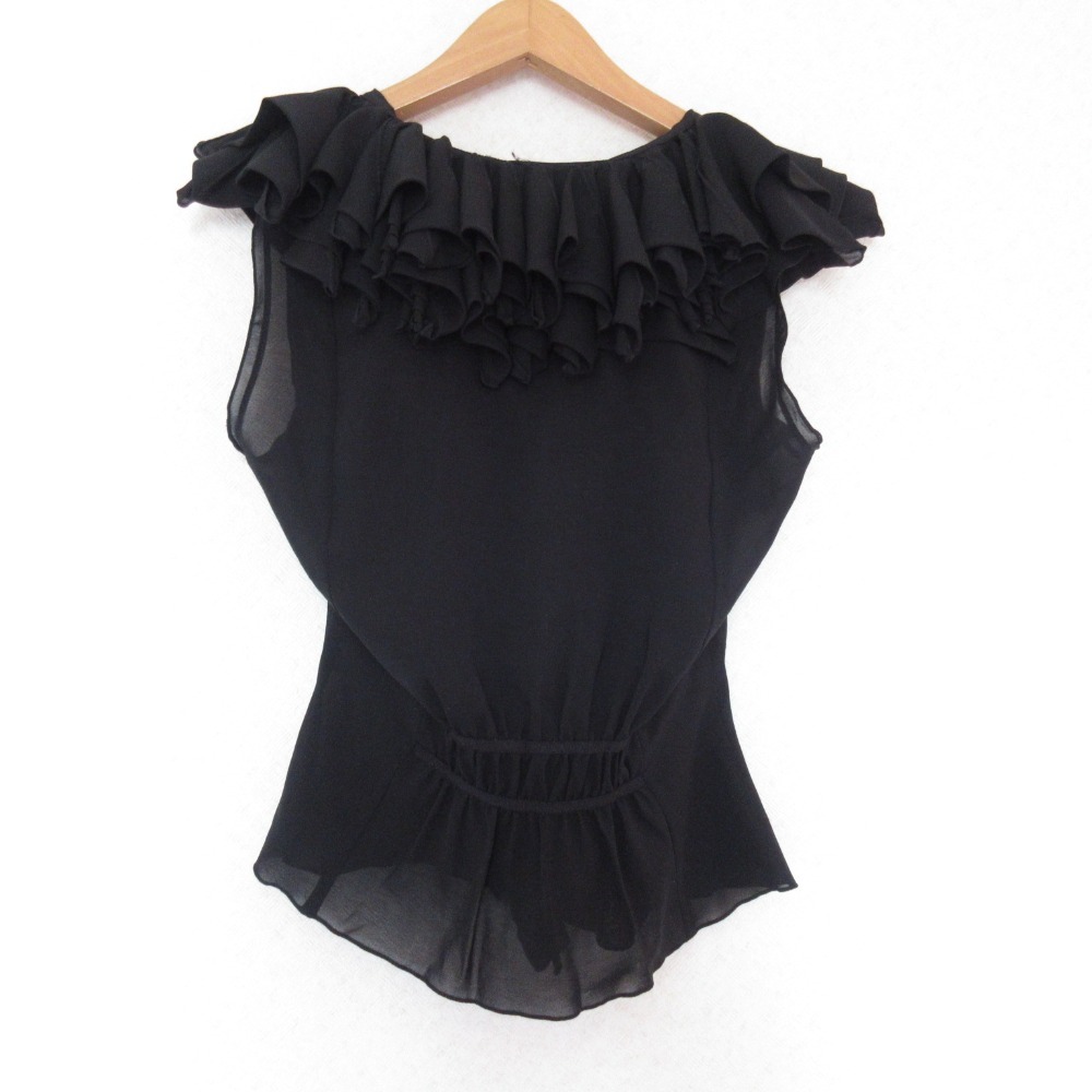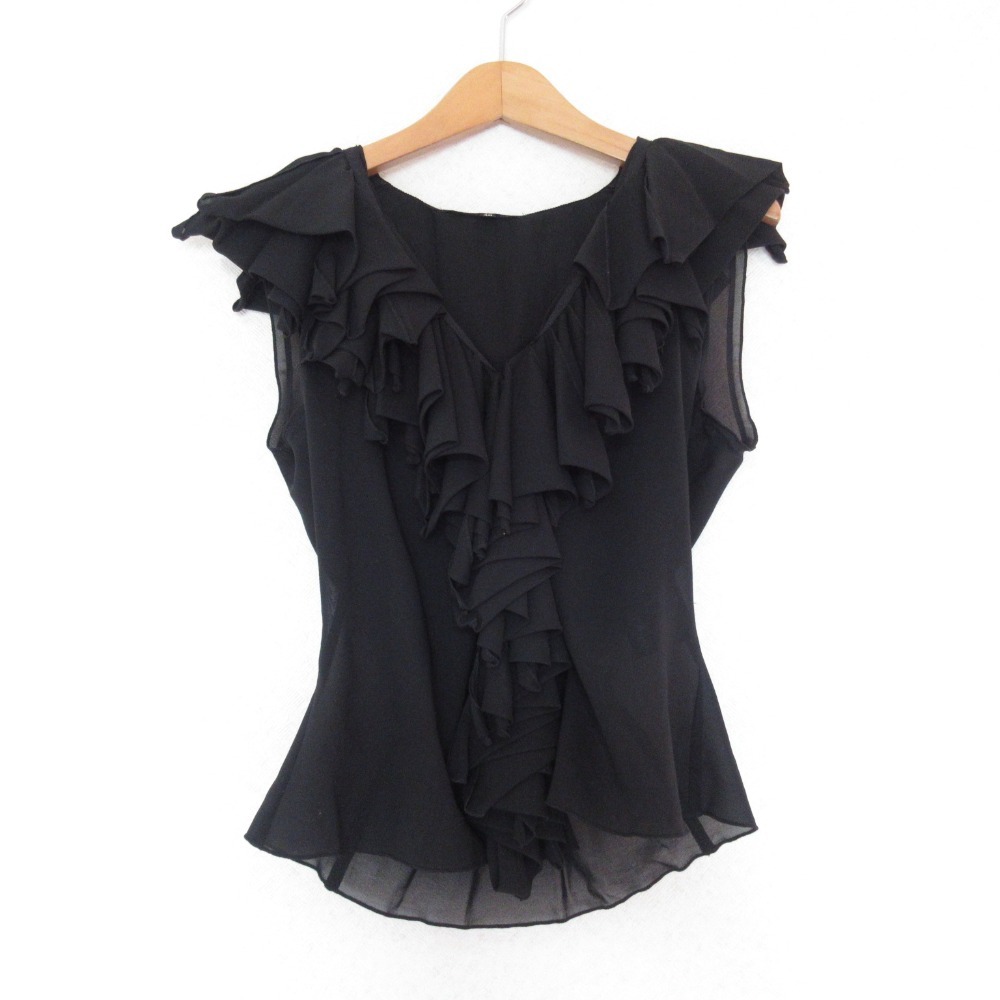 商品名:FOXEY NEW YORK フォクシーニューヨーク ノースリーブフリルブラウス 40 ブラック