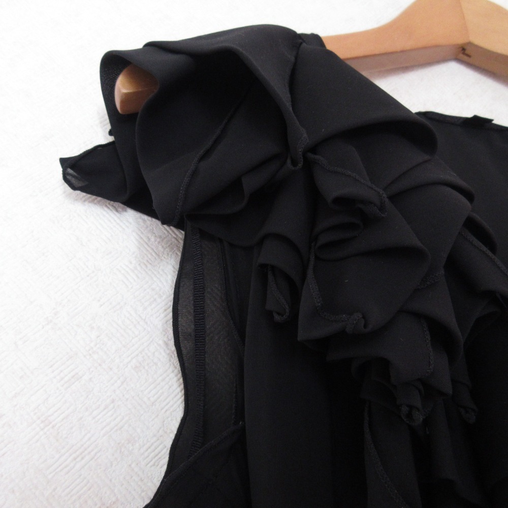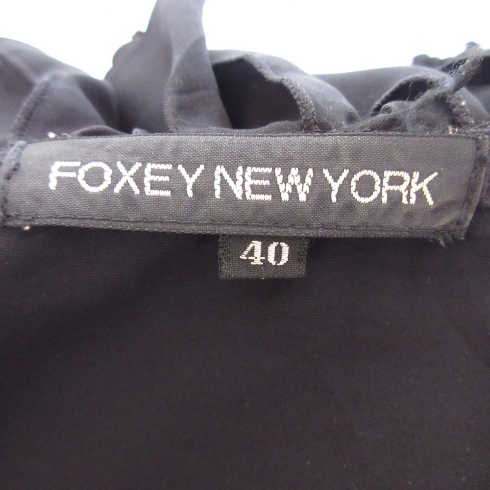 美品 FOXEY NEW YORK フォクシーニューヨーク ノースリーブフリルブラウス 40 ブラック