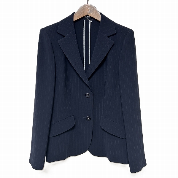 #anc ラピーヌブランシュ LAPINE BLANCHE ジャケット 11 紺 ピンストライプ シングル 美品 レディース [943177]