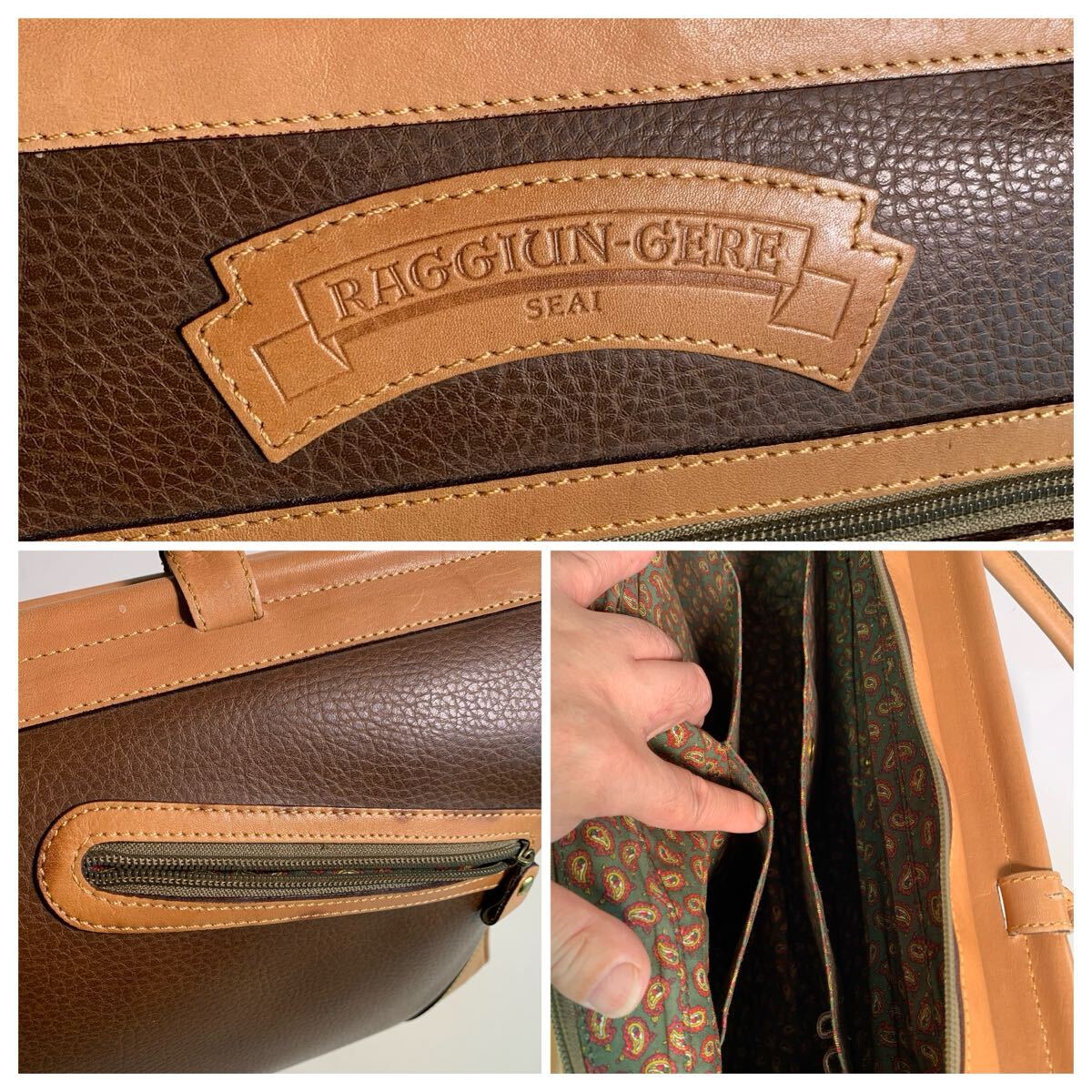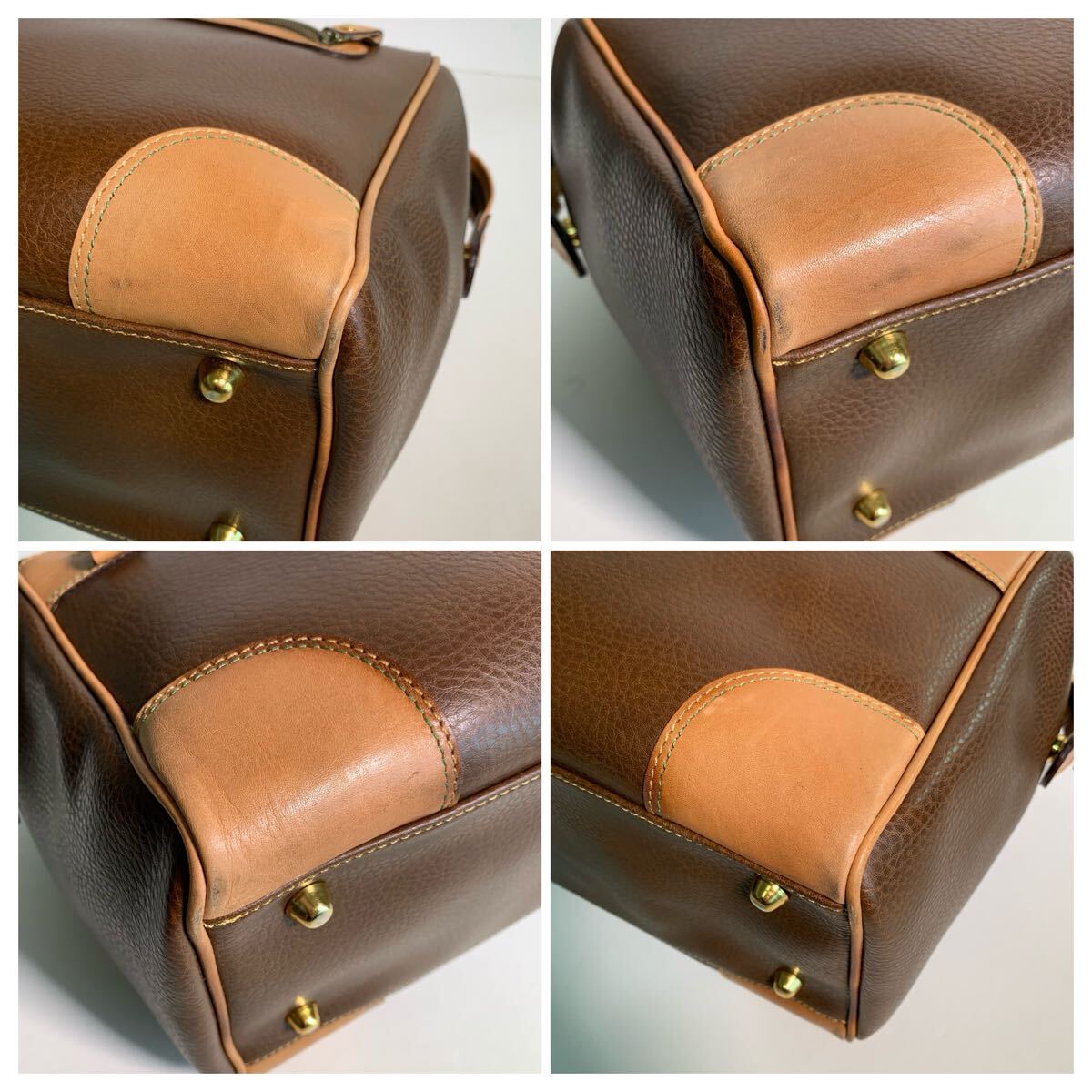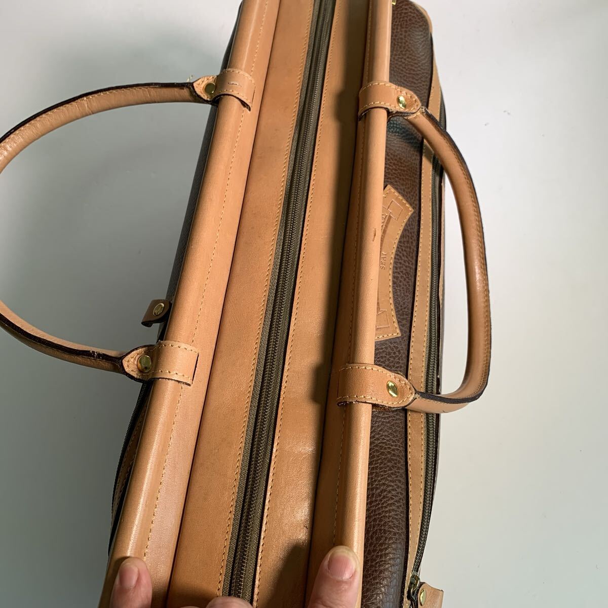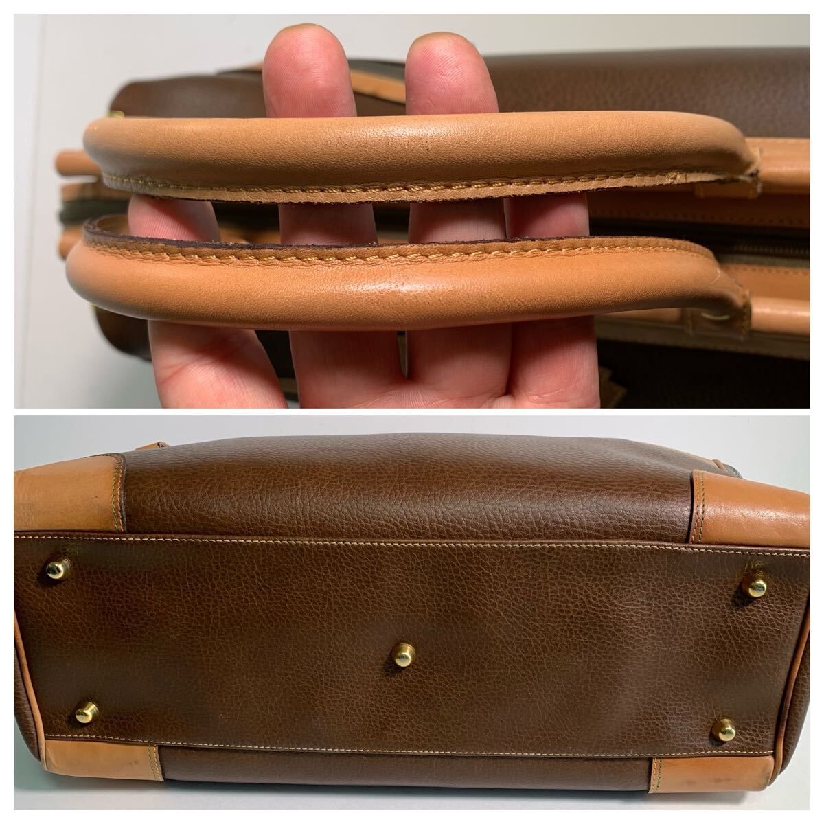 底角と持ち手はヌメ革で色の濃いブラウン部分は合皮かと思いますが確証はありません。