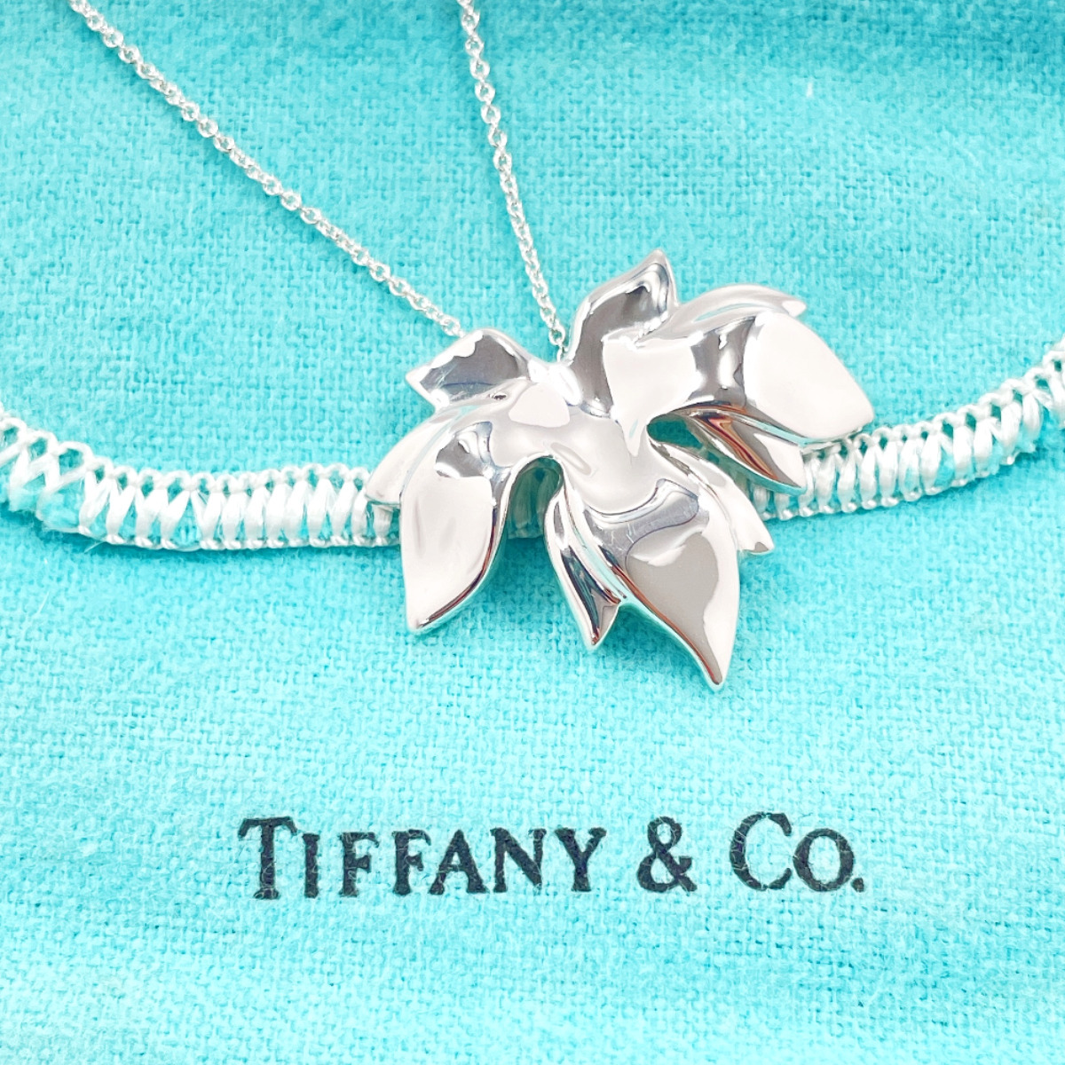 商品説明 | ティファニー、メープルリーフモチーフのネックレスです。自然の美しさをそのまま映し出したような立体感のあるデザインは、胸元に華やかさと上品な存在感を与えてくれます。 |
