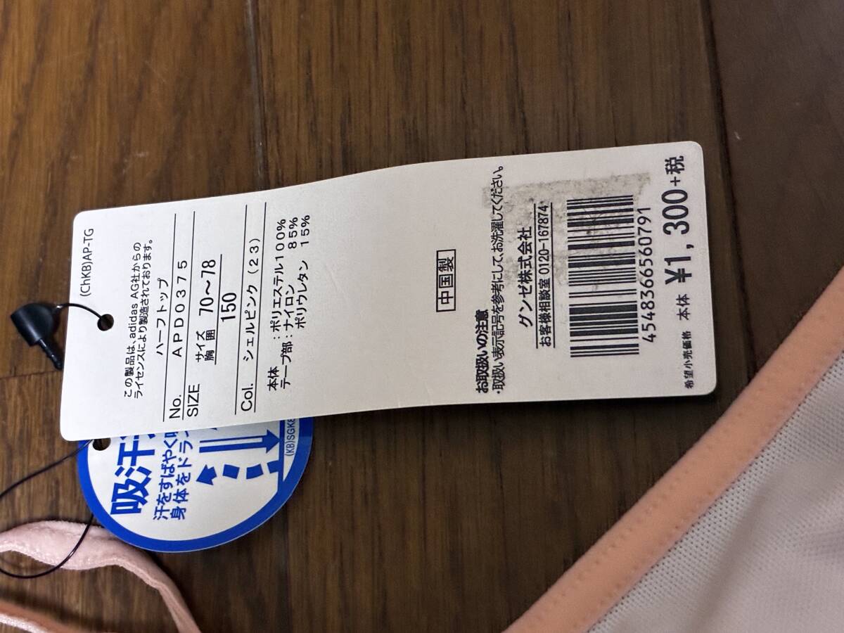 新品未使用品 アディダス ハーフトップ  吸汗速乾ドライ ブラジャー アディダス グンゼ  150サイズ