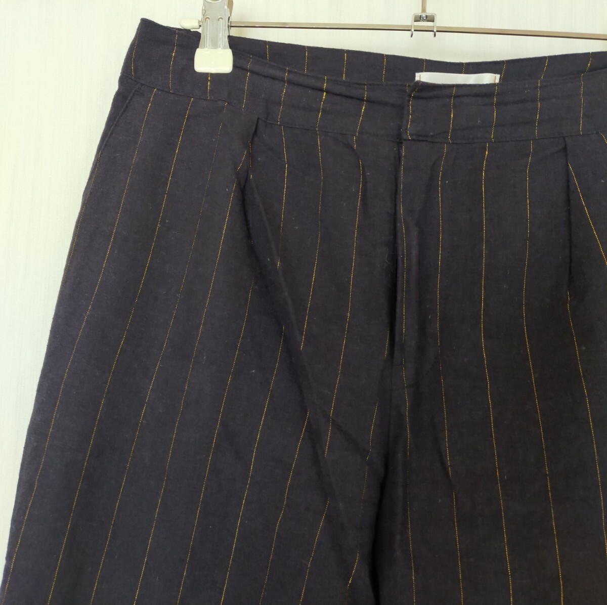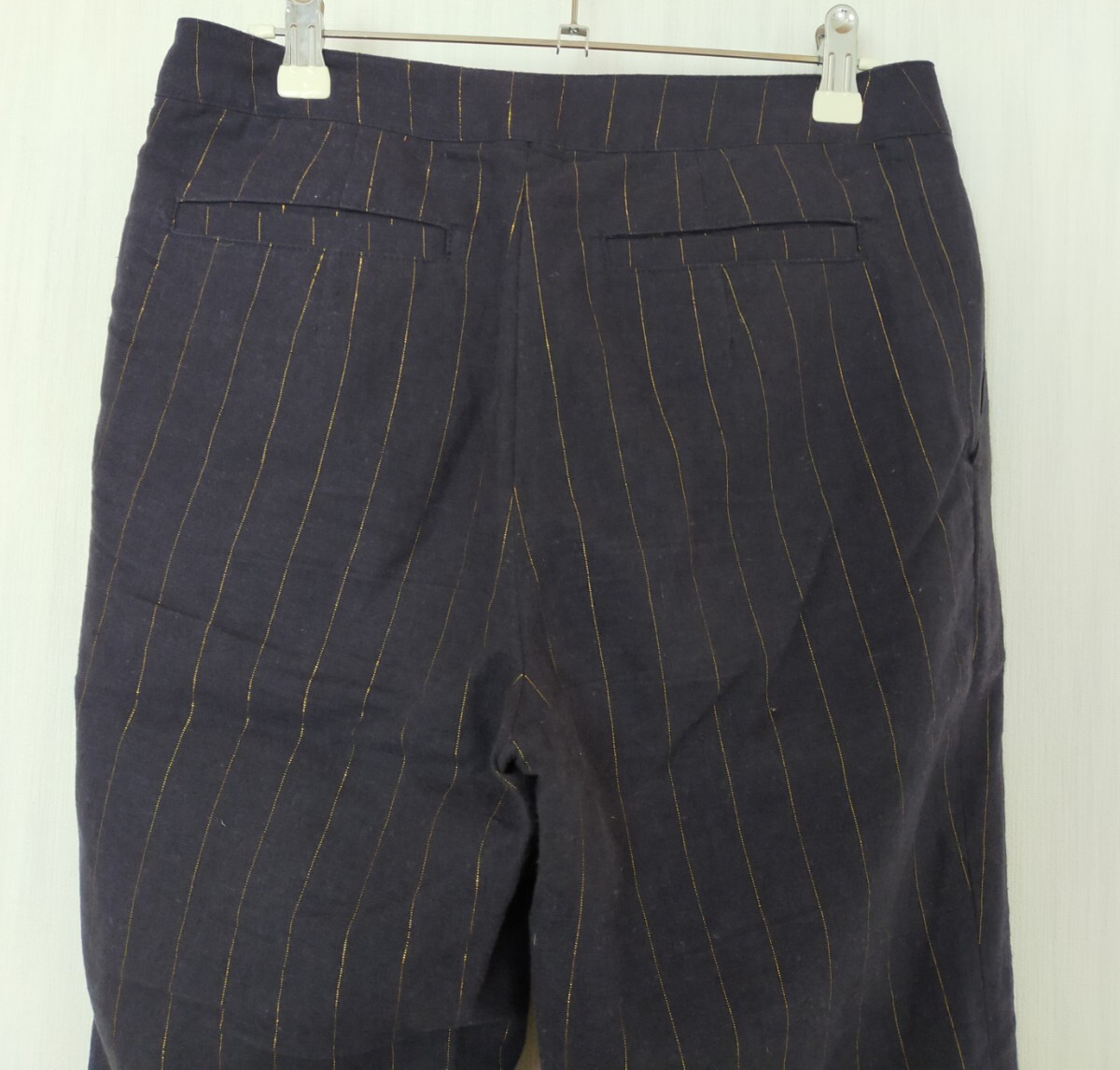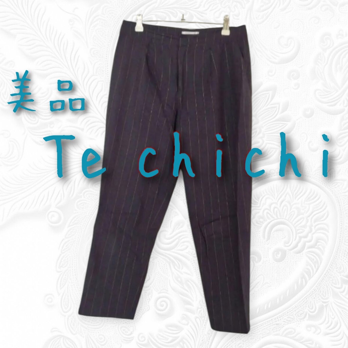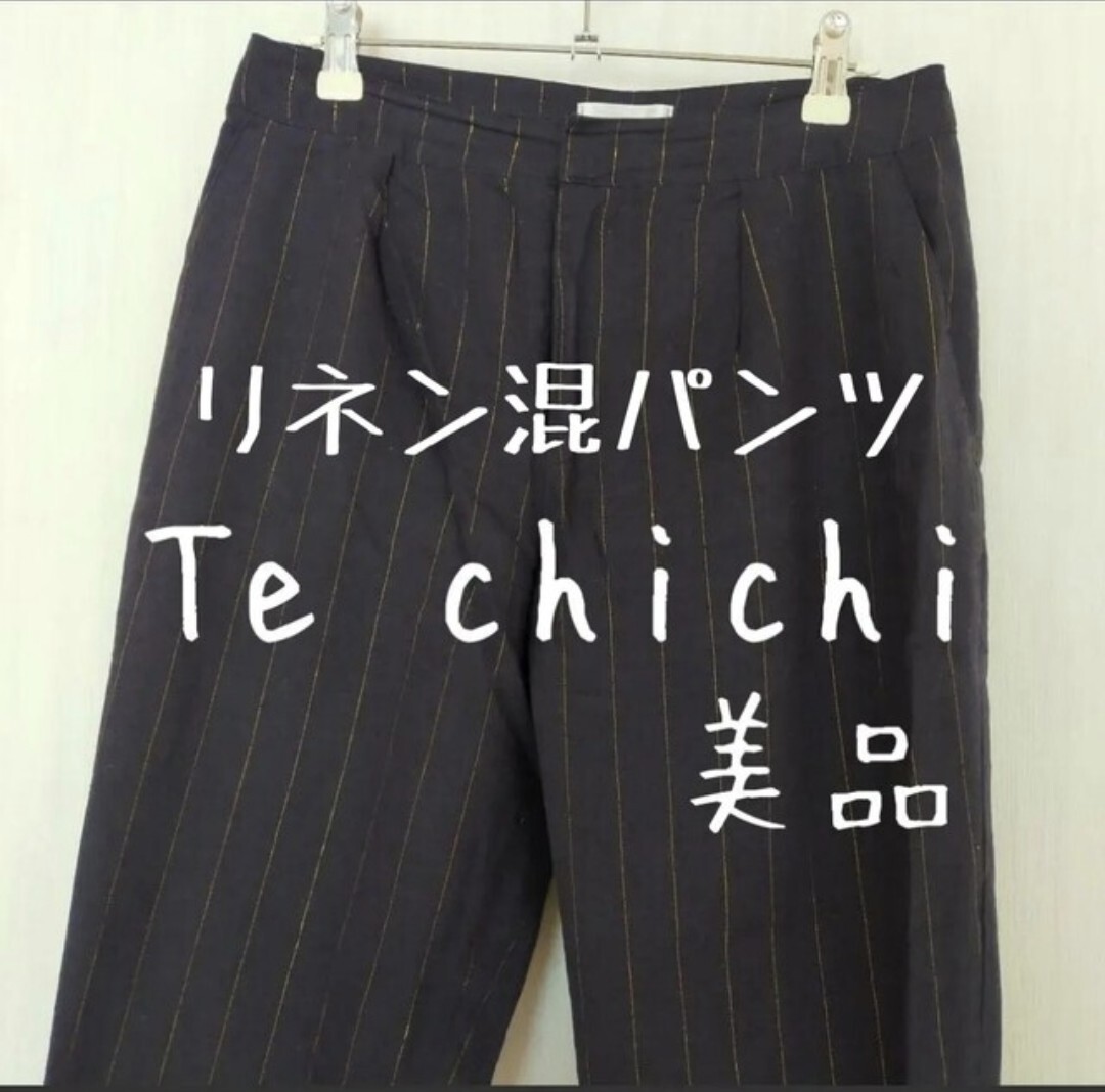 美品 Te chichi テチチ リネン混 ラメストライプクロップトパンツ 紺 ネイビー キレイめ