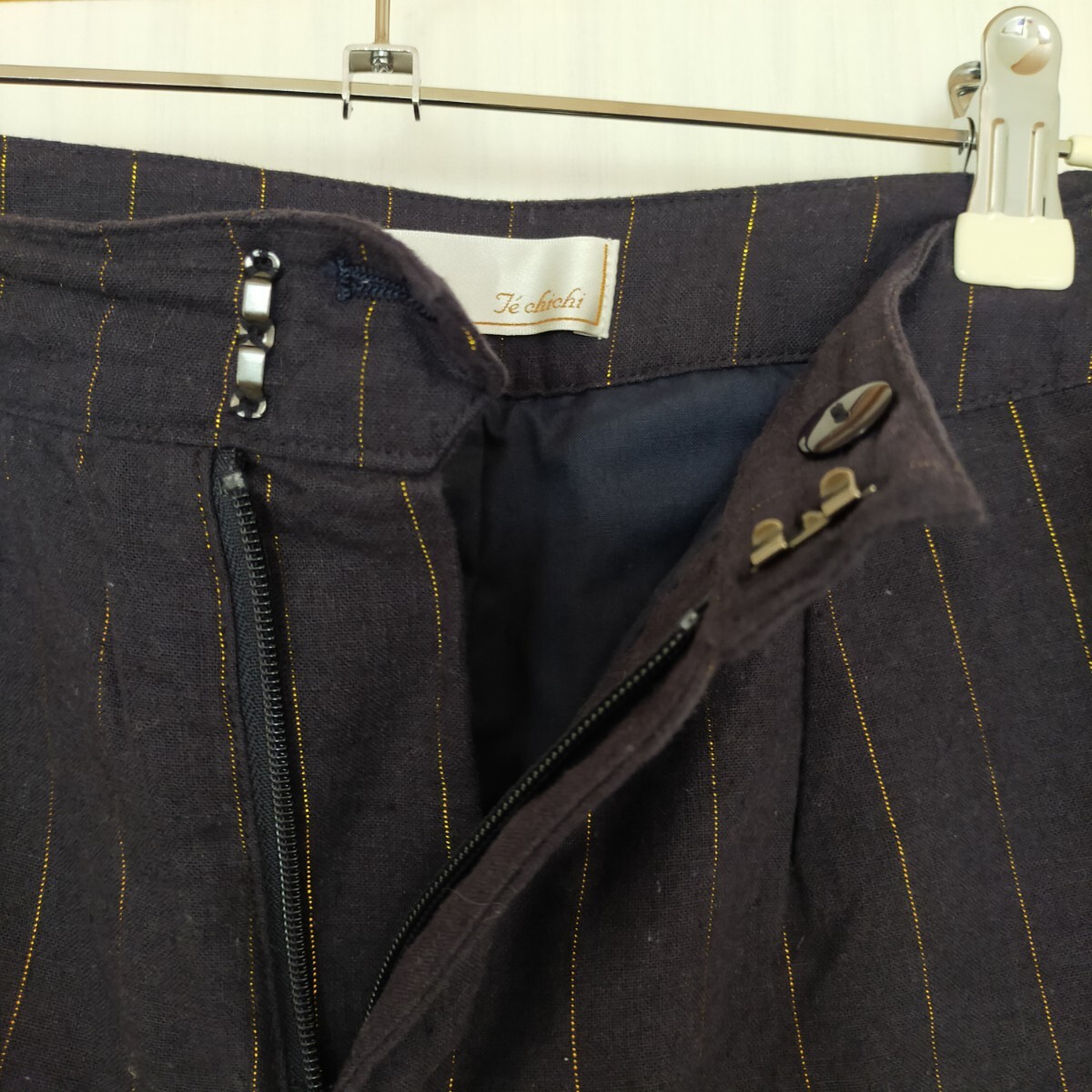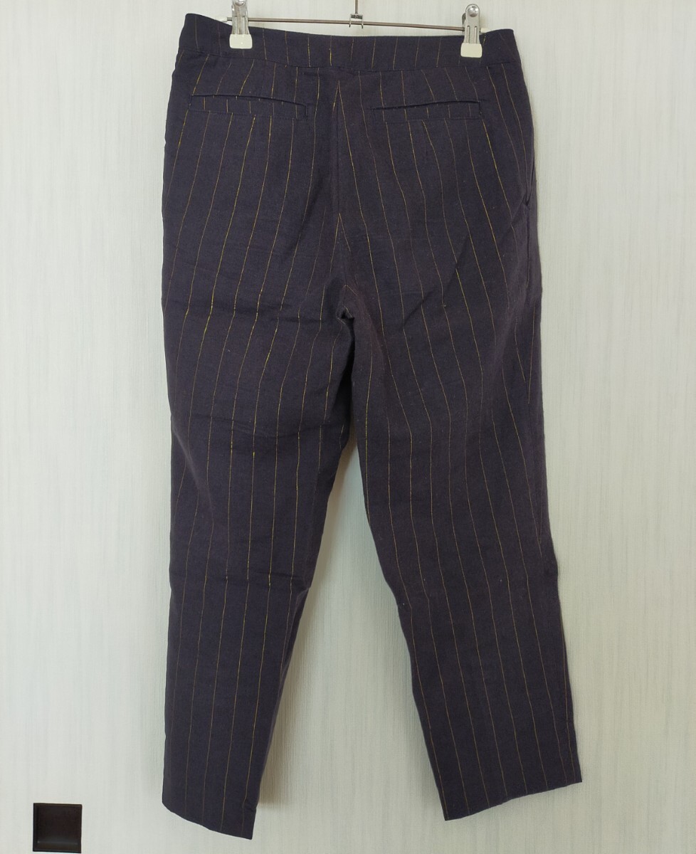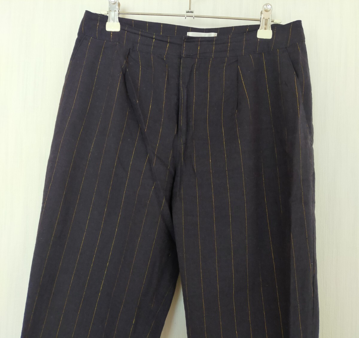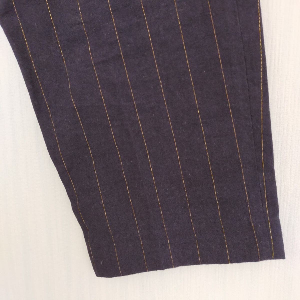 美品 Te chichi テチチ リネン混 ラメストライプクロップトパンツ 紺 ネイビー キレイめ