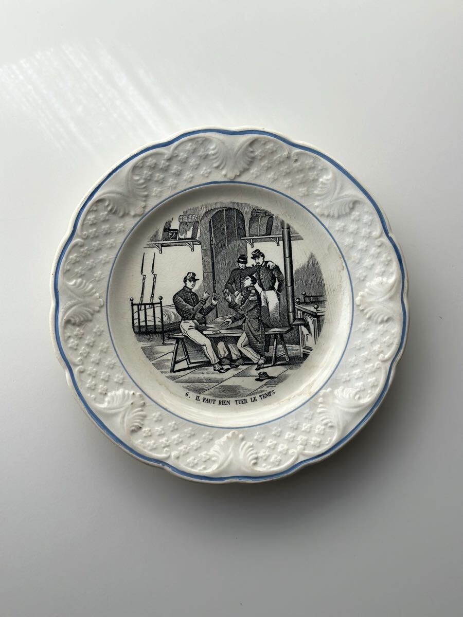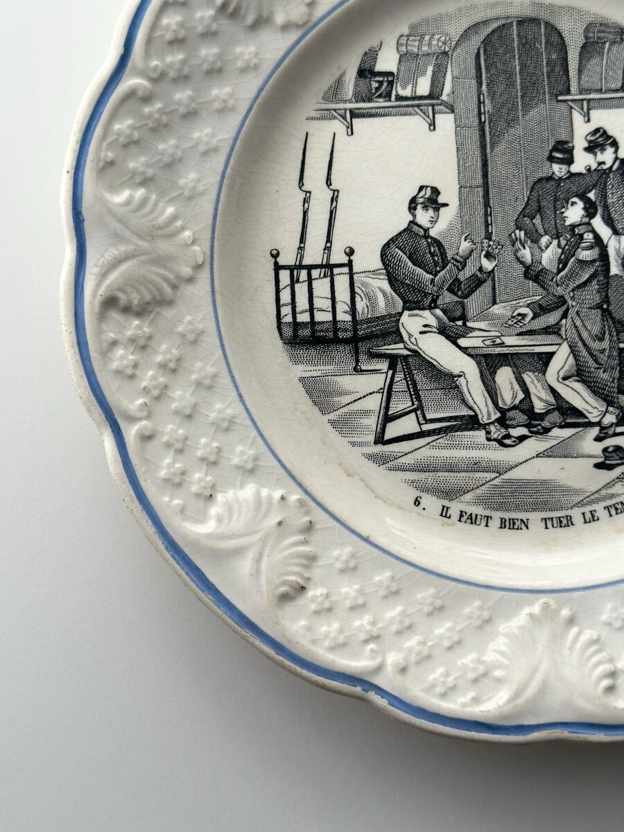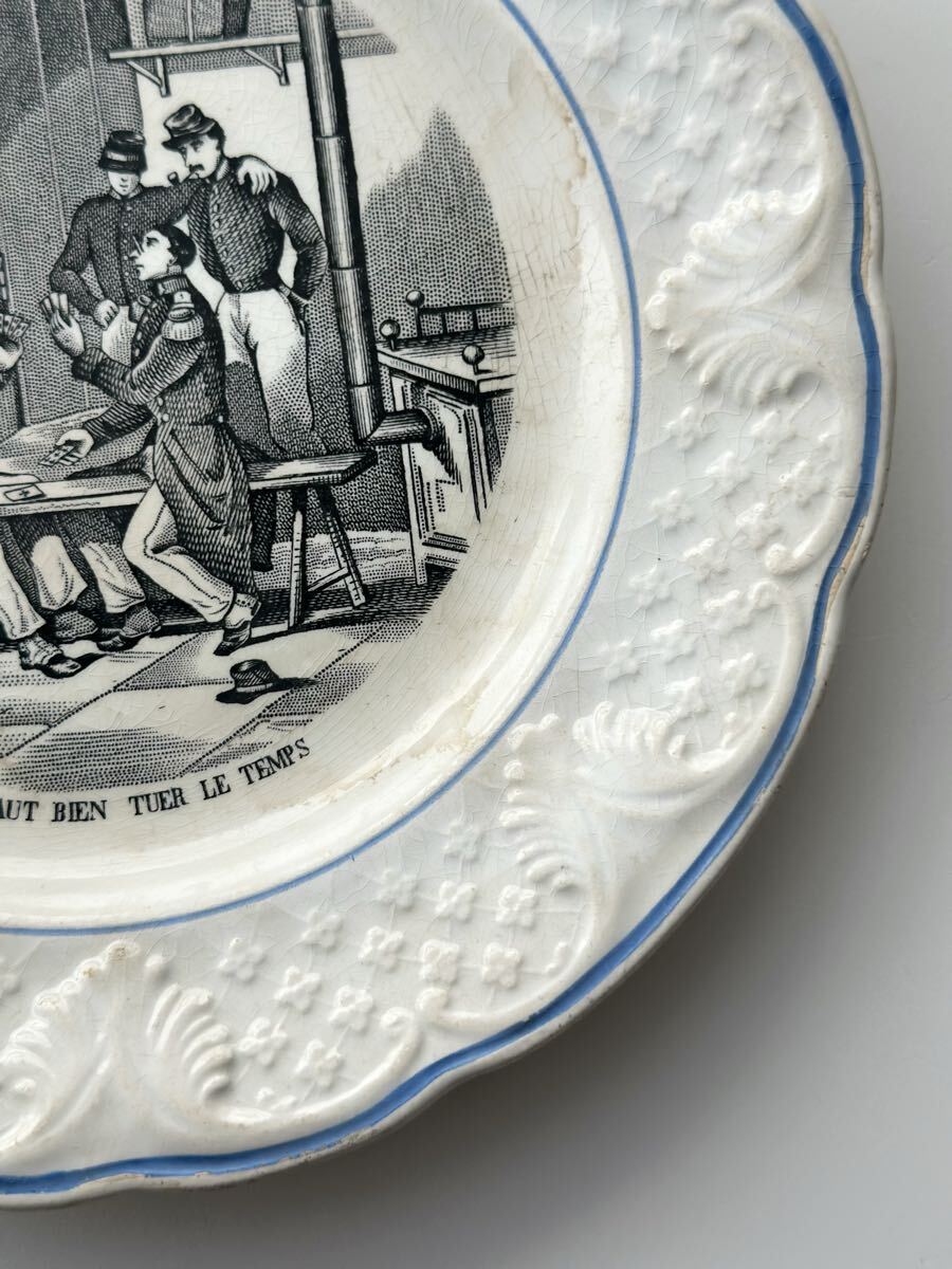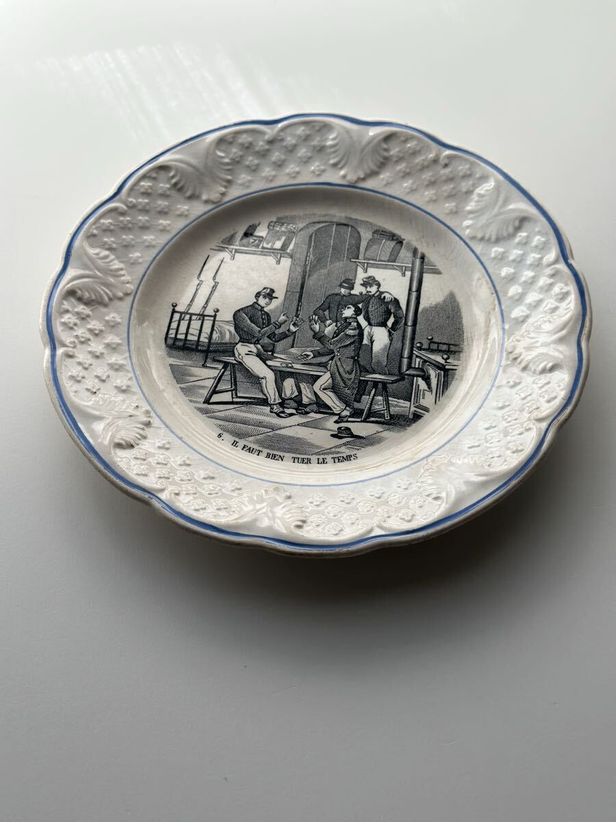 【★秋の均一セール】フランス アンティーク 皿 窯元不明 Terre de fer / トーキングプレート レリーフプレート グリザイユ皿