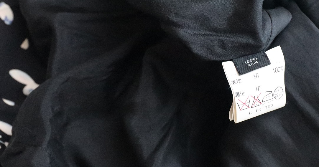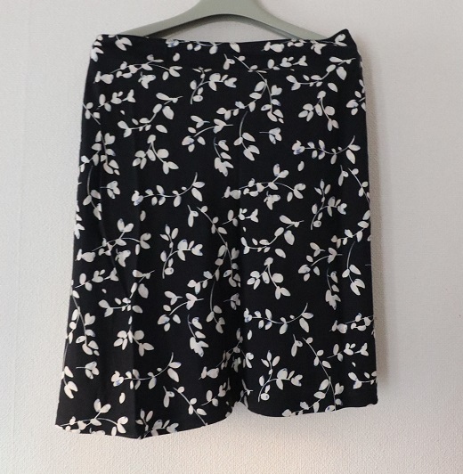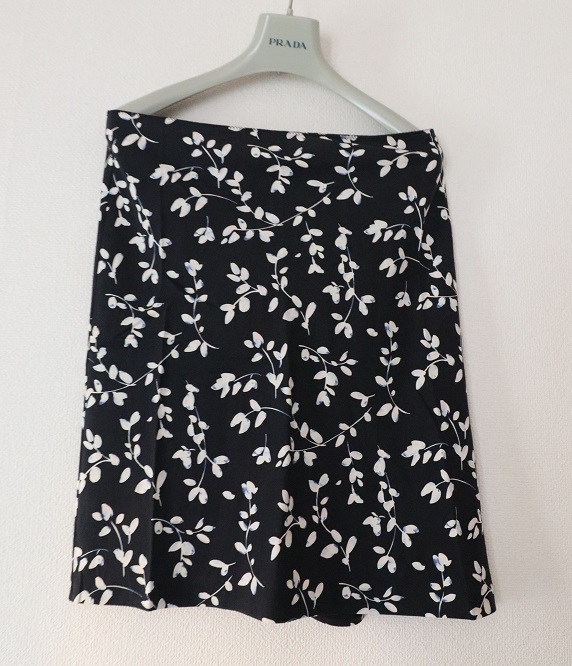 スカートの着丈は約55cm、ウエスト幅約41cm、素材はシルク、裏地なし、