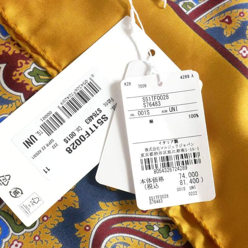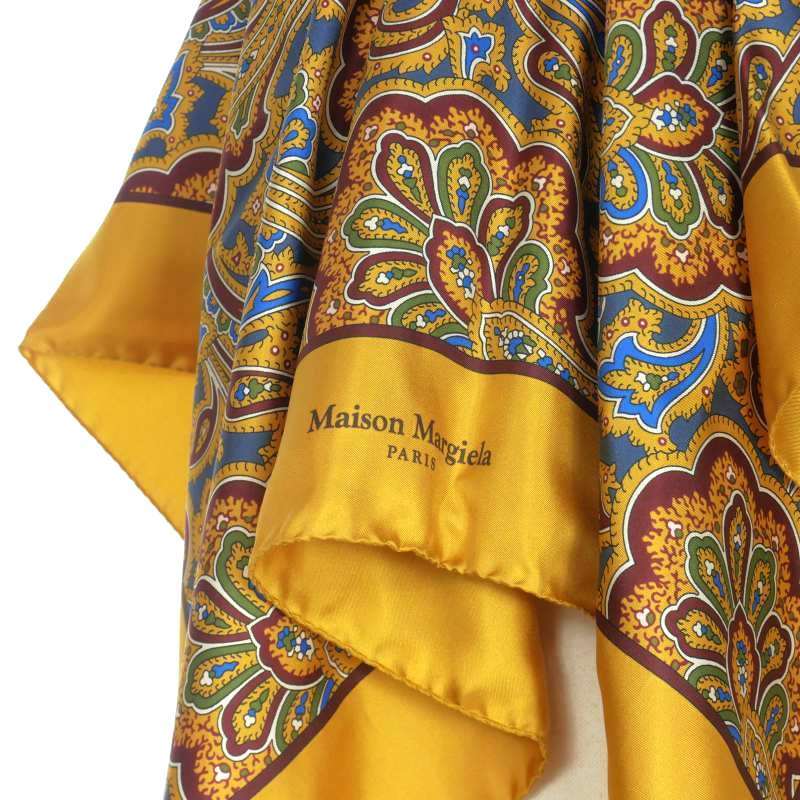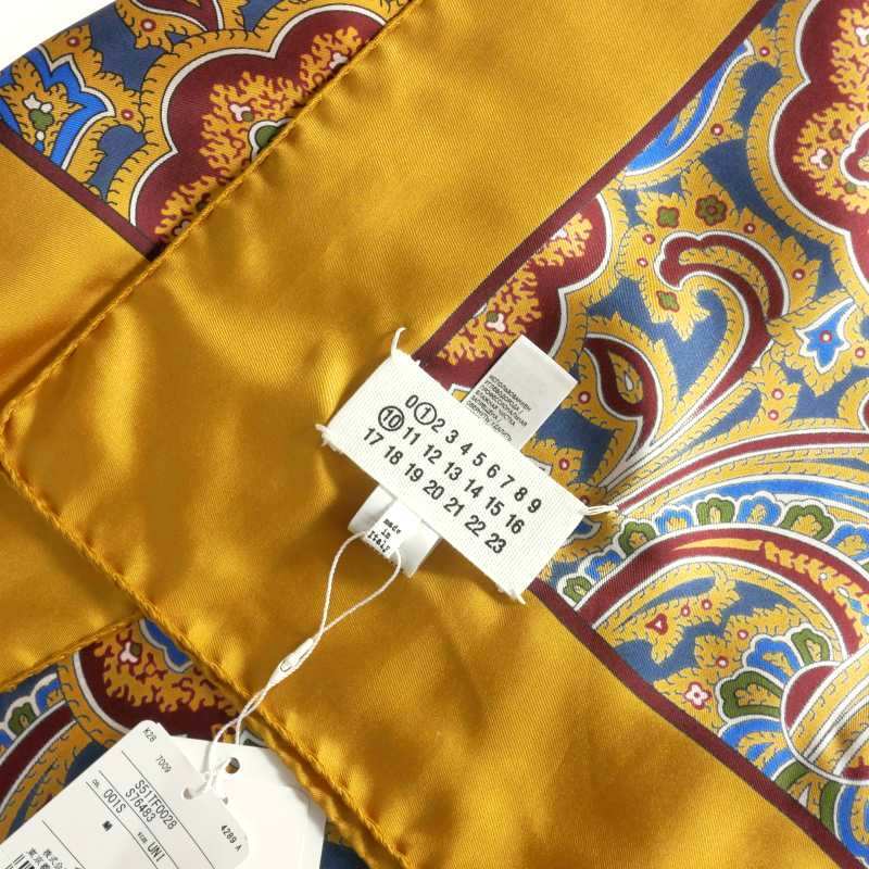 未使用品 メゾンマルジェラ Maison Margiela 22AW カレンダータグ シルクスカーフ ストール ペイズリー柄 UNI ゴールド S51TF0028 国内正規 レディース