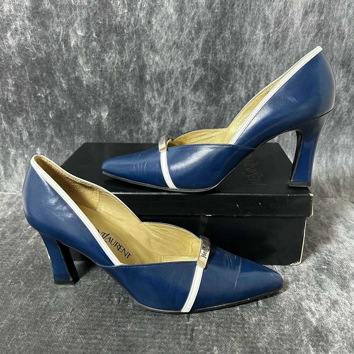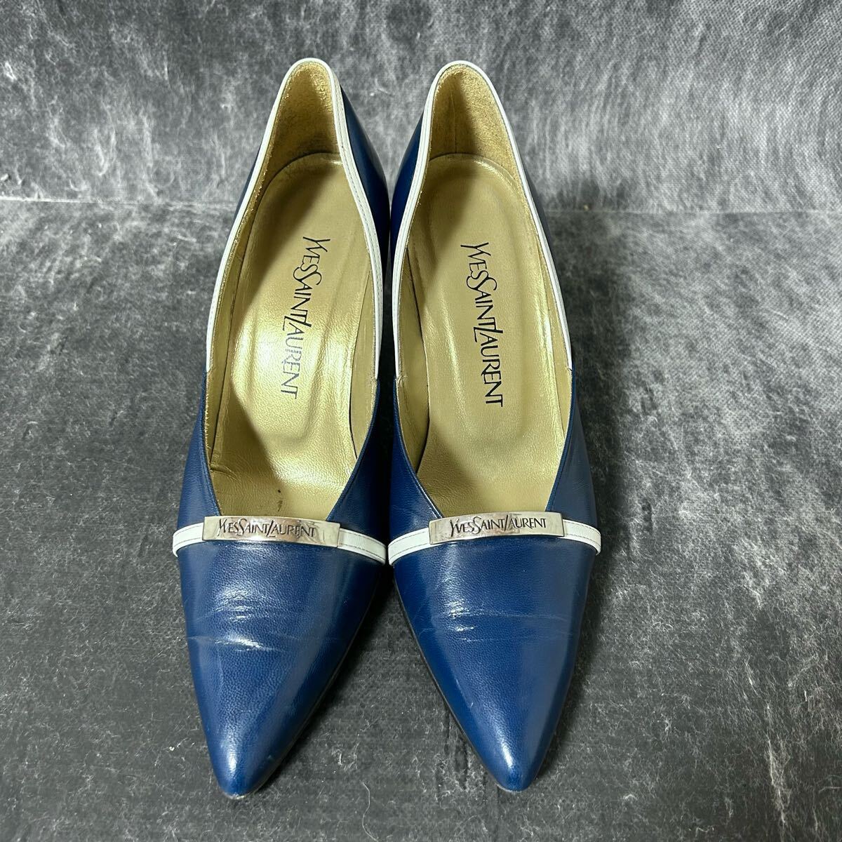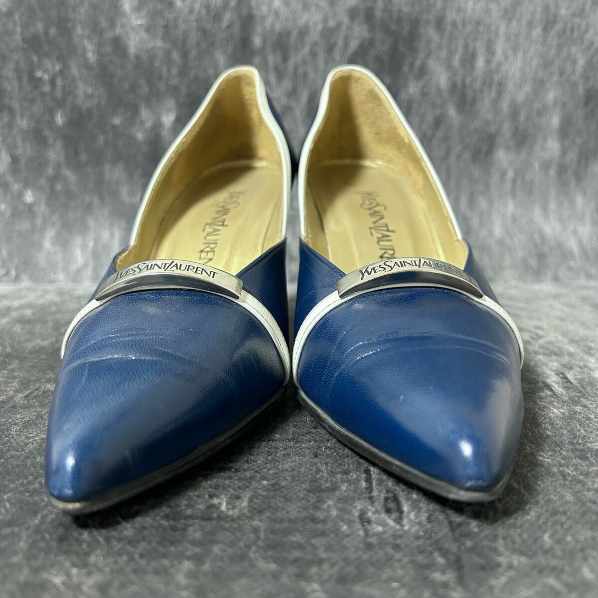Yves Saint Laurent イヴ・サンローラン ビットパンプス ヒールパンプス レザー YSL 361/2 23.5cm相当 ブルー ホワイト *EA