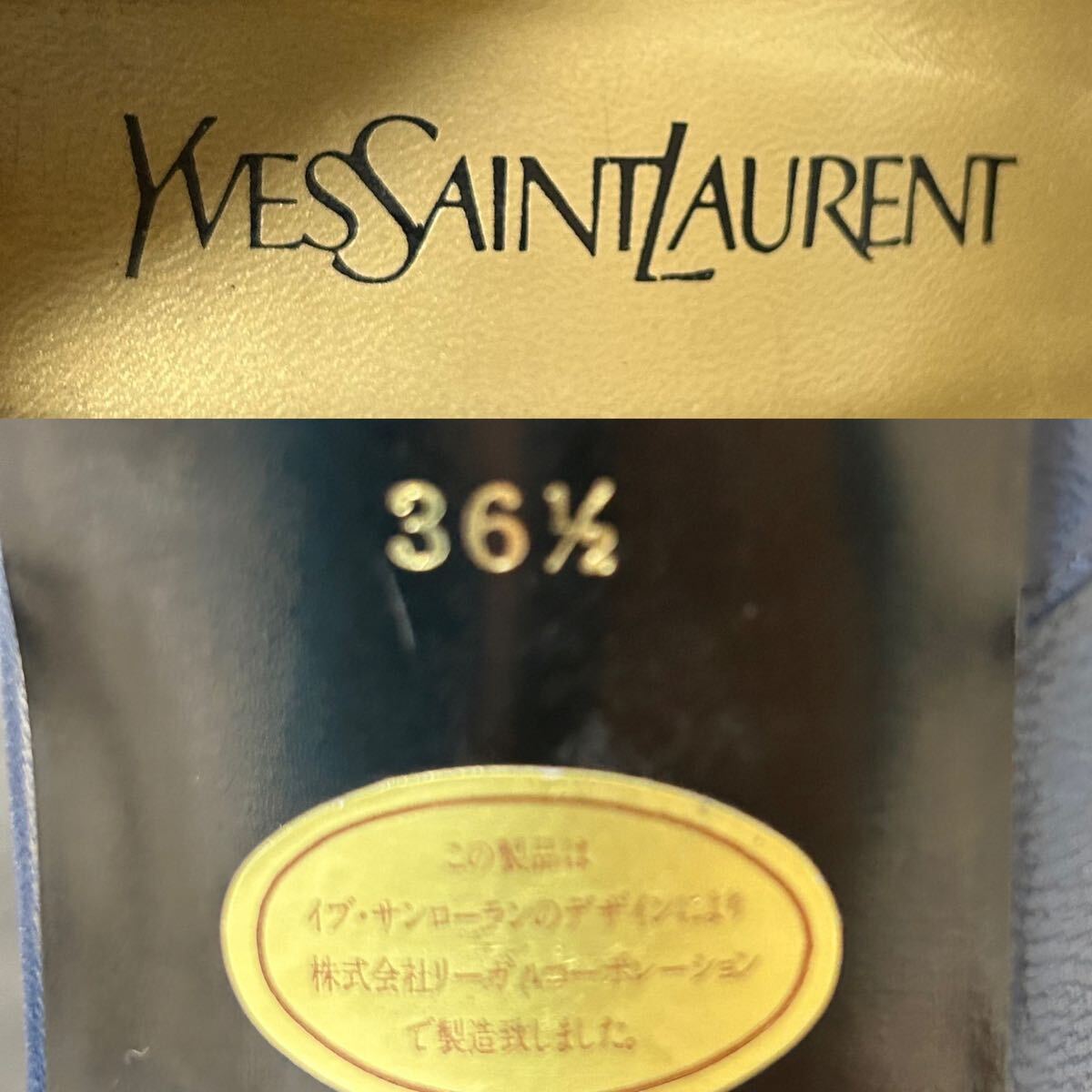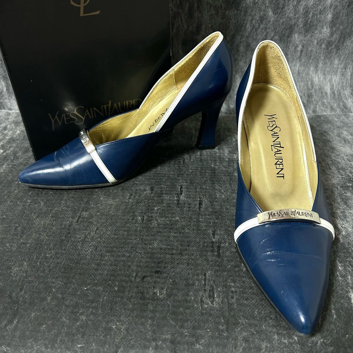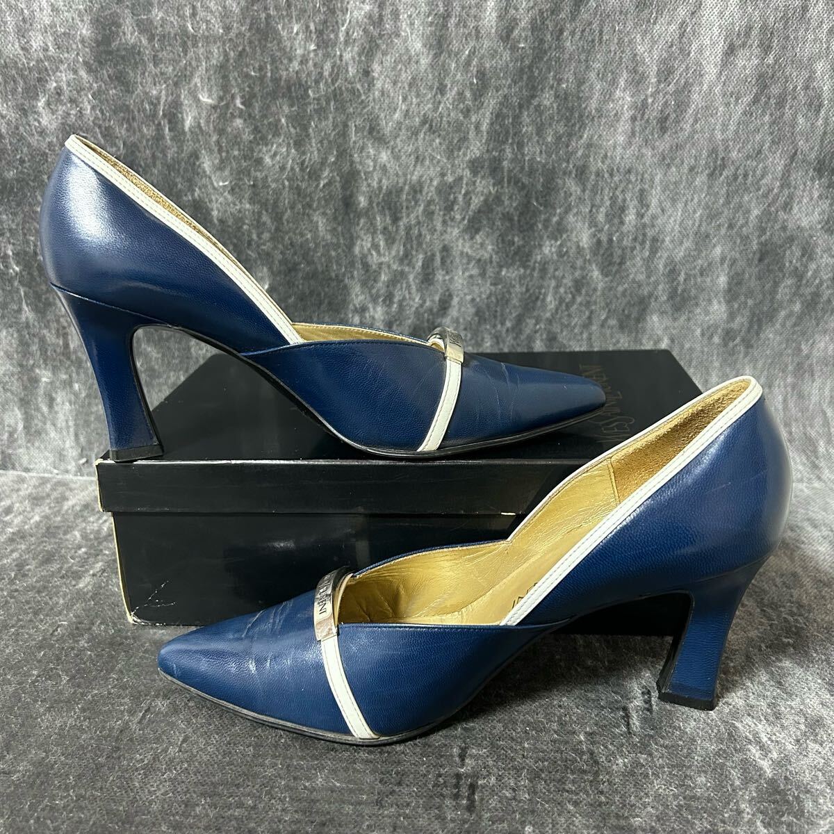 Yves Saint Laurent イヴ・サンローラン ビットパンプス ヒールパンプス レザー YSL 361/2 23.5cm相当 ブルー ホワイト *EA