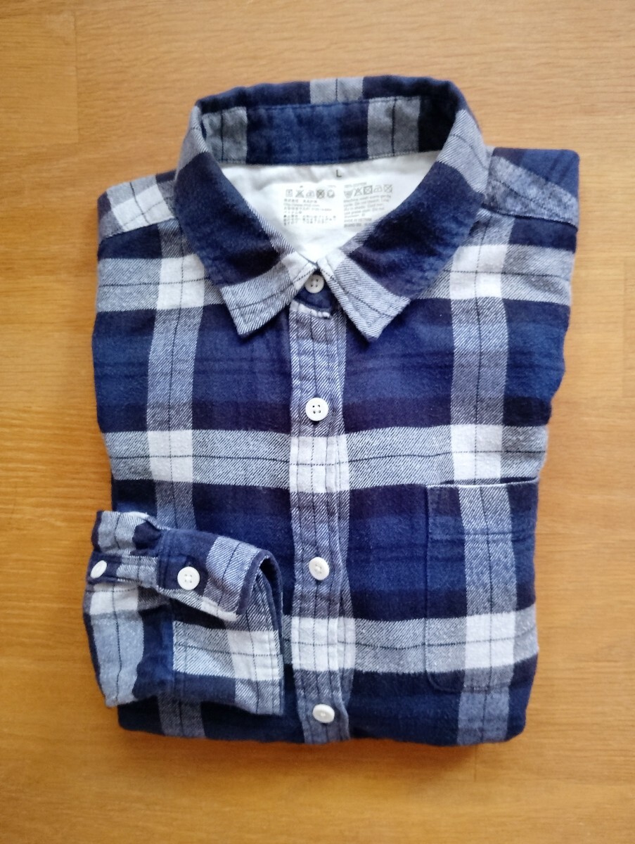 | ● ● 送料無料 無印良品 両面起毛フランネルレギュラーカラー長袖シャツ L 青チェック MUJI ● ● | |||
