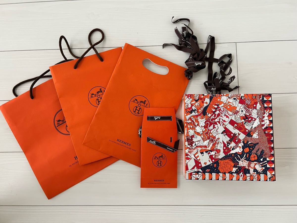 HERMESのロゴ入り紙製ショップ袋、ギフト包装に最適。