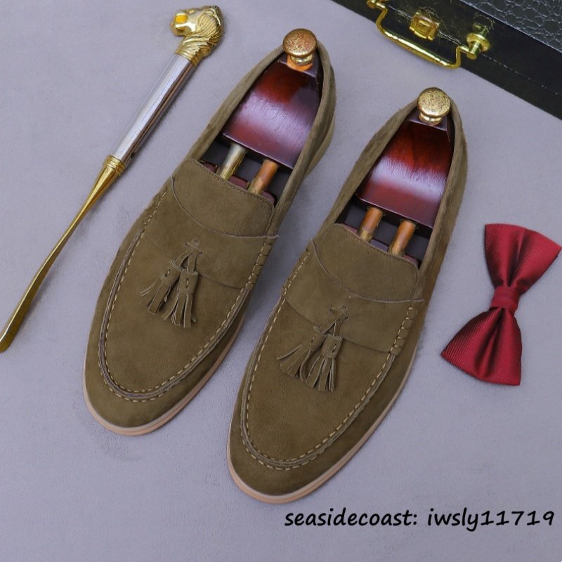 最高級★ビジネスシューズ 本革 メンズ ドライビングシューズ 職人手作り ローファー スリッポン スエード革 紳士靴 革靴 ブラウン 26.5cm