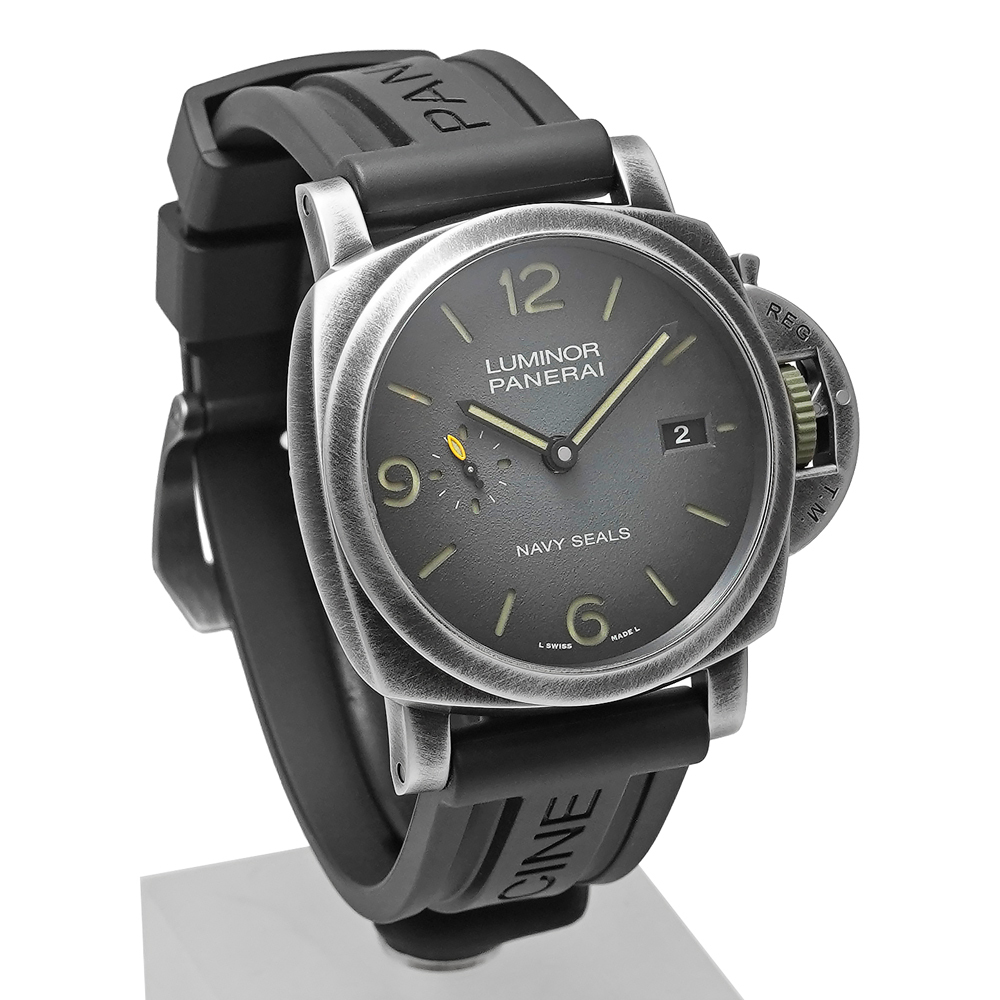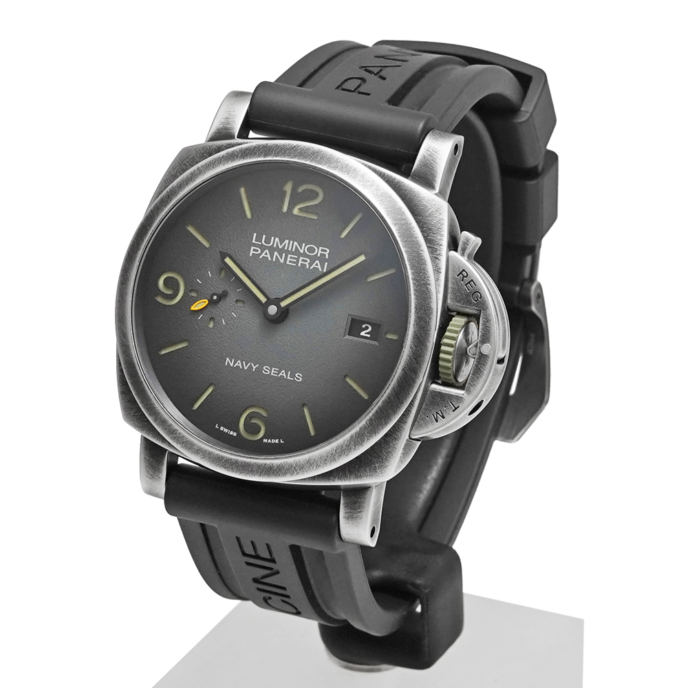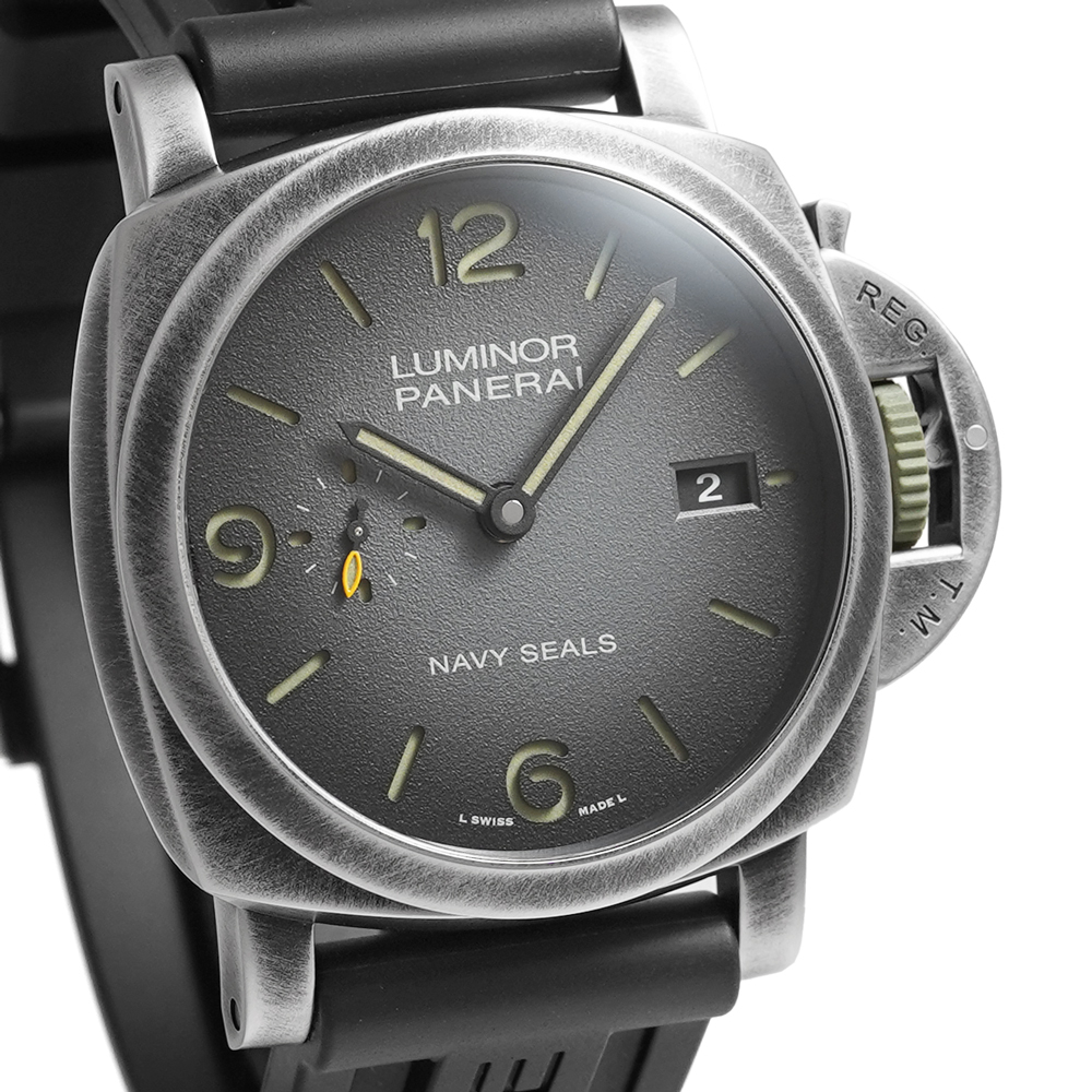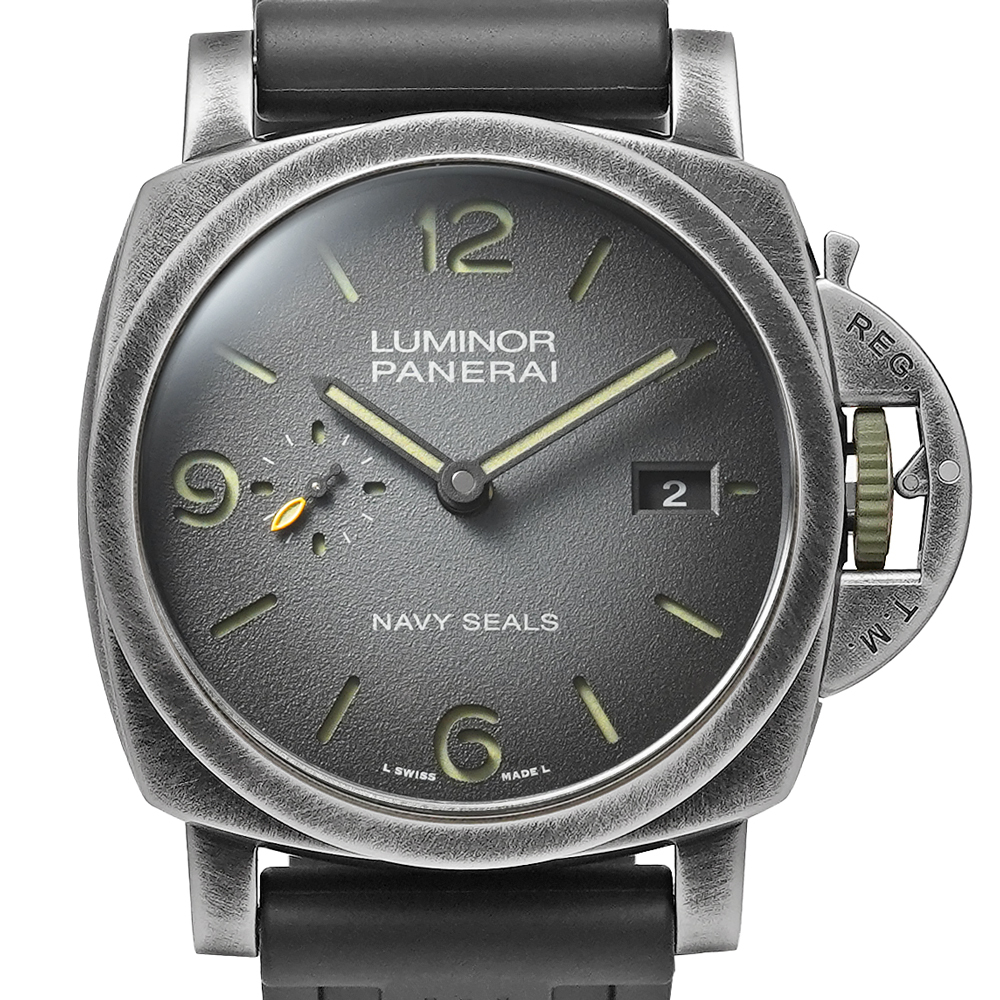 替えの純正ベルト付き OFFICINE PANERAI ルミノール マリーナ ネイビーシールズ Ref.PAM01412 グレー 中古品 メンズ 腕時計