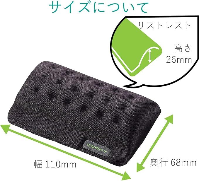 エレコム 分散・通気 リストレスト 疲労低減 "COMFY" ショート ポリウレタン ブラック MOH-013BK