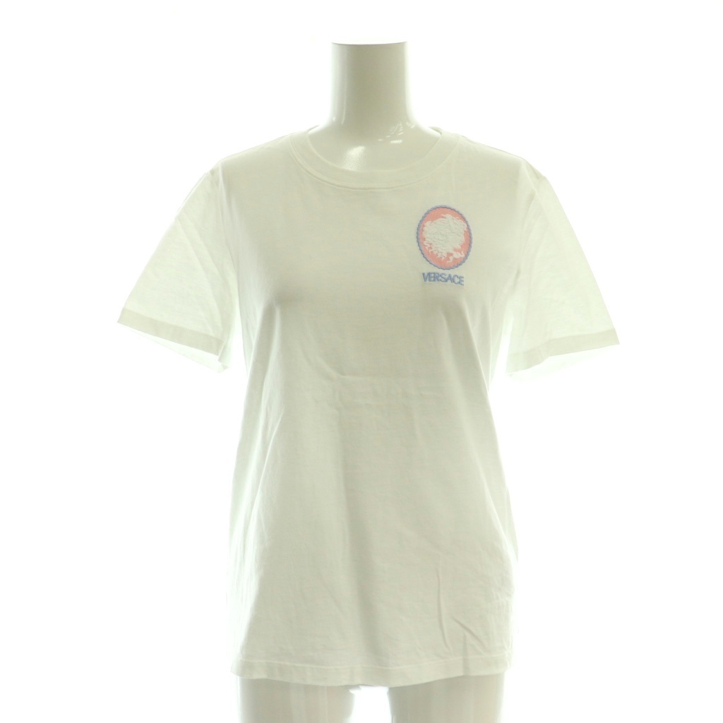 ヴェルサーチ ヴェルサーチェ VERSACE スリムフィット Tシャツ カメオ ロゴ 半袖 36 ホワイト /HK ■OS レディース