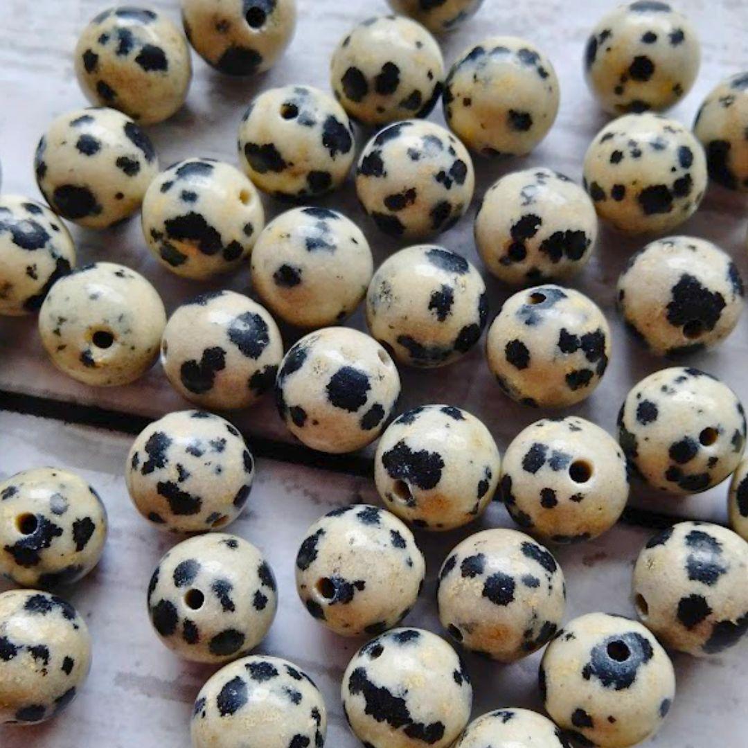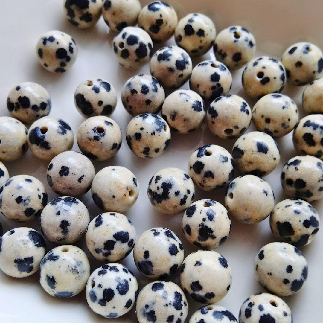 まだら模様の天然石の丸ビーズ、22個セットです。
