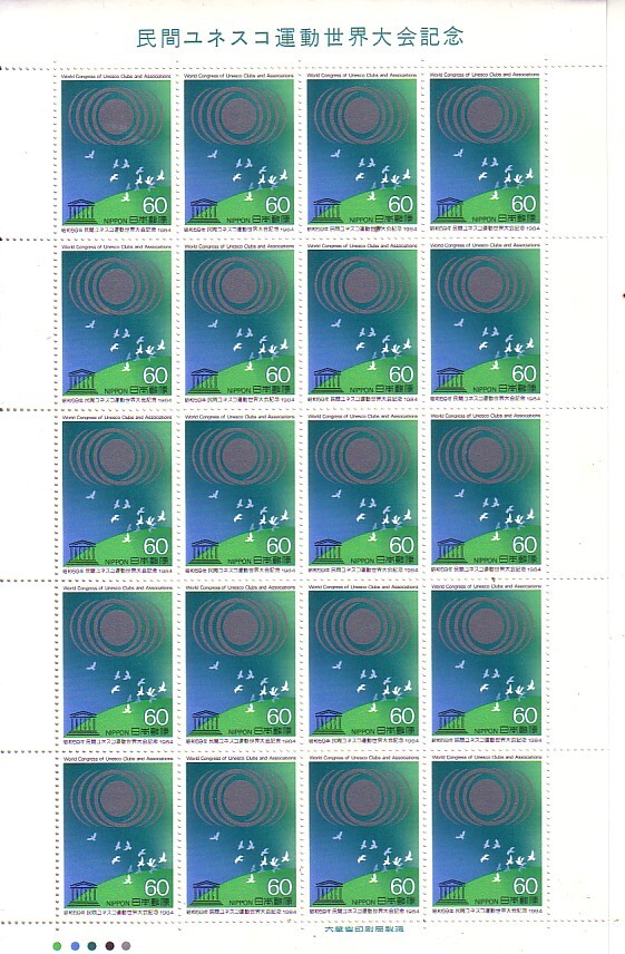 「民間ユネスコ運動世界大会記念」の記念切手です(60円切手X20枚)。送料は普通140円(普通便 複数同梱発送では180円)になります。
