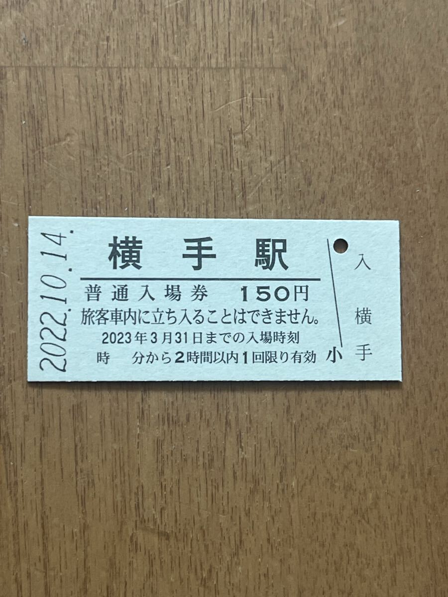 JR東日本奥羽本線横手駅のB型硬券入場券です。(2022年)