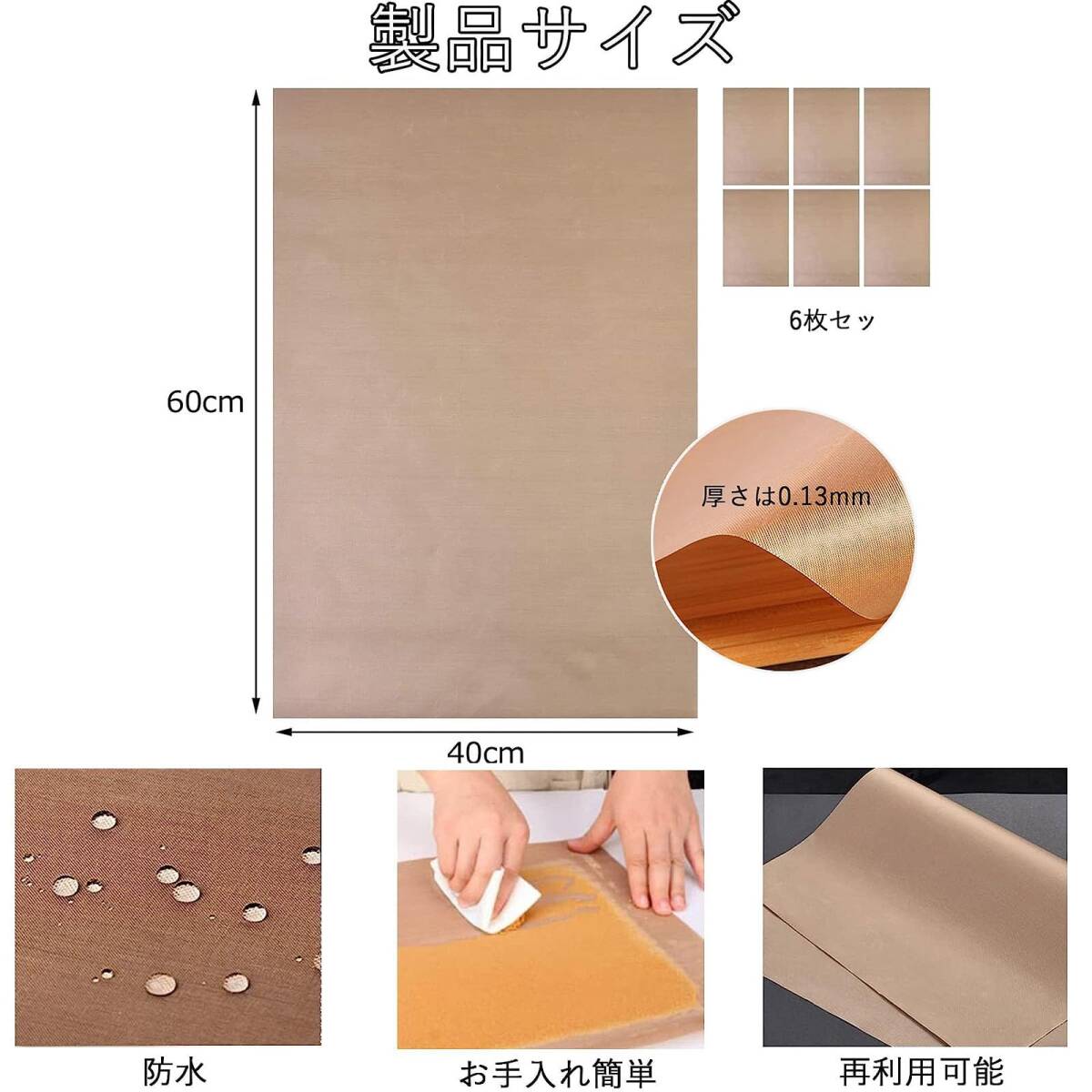 6枚セット加工 耐熱 耐油 耐久 水洗い可能 クッキングシート オーブンペーパー オーブンシート 繰り返し使える オーブン ベーキング 料理 グリル フライ 蒸し 40*60cm-ブラウン
