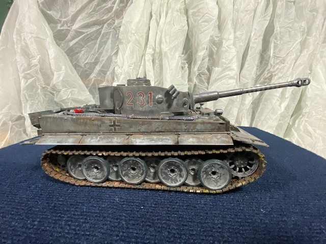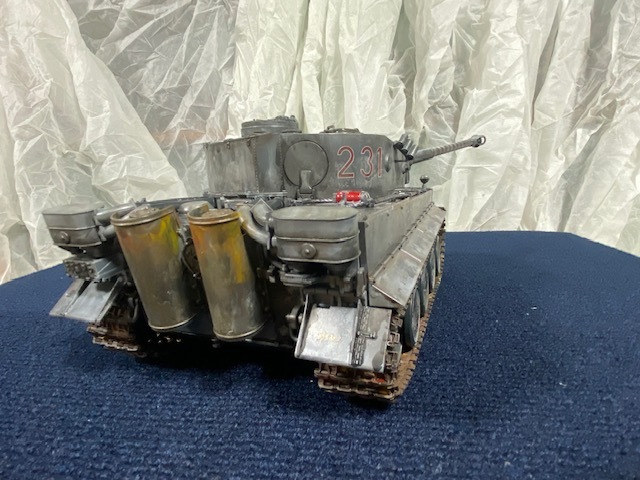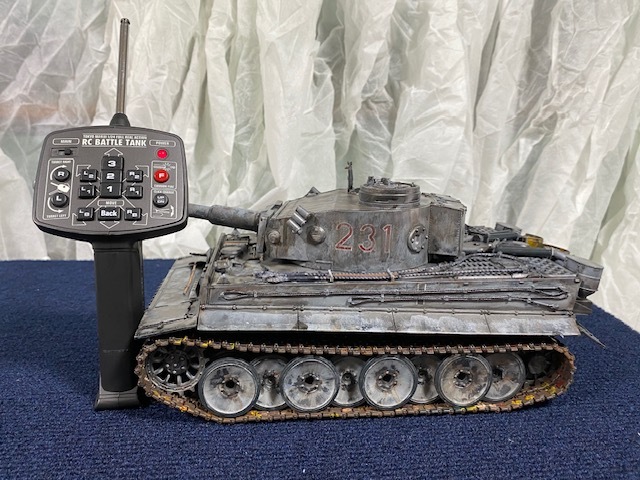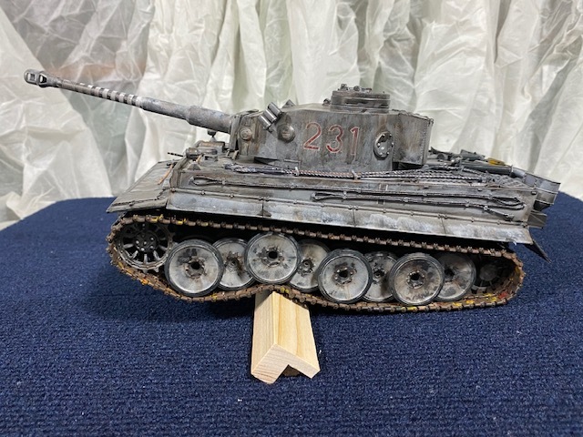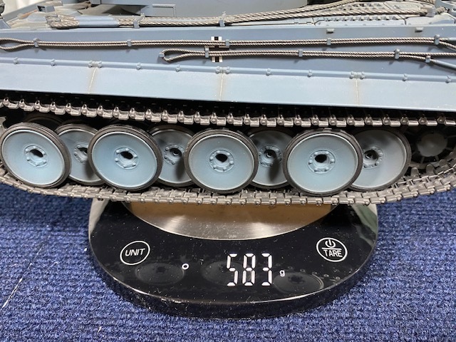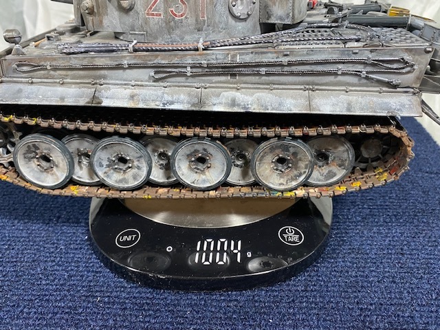 走行・砲塔旋回・砲身上下・BB弾発射等確認済みの本体にウェザリング加工を塗っては剥がしで3回繰り返す事でよりリアルな外観・履帯に仕上がっています。更に重量を倍増させたことでノーマルでは履帯が掛からずに乗り上がることが出来なかった障害物をも楽々乗り越えることが出来るようになっております。また、大きさにもよりますが、小さめの障害物を履帯で轢いたときにはノーマルでは車体が跳ね上がるなどしやすく、オモチャ的に見えますが、此方の個体ではとても落ち着いた挙動を見せてくれ、超重量級戦車を堪能させてくれます。