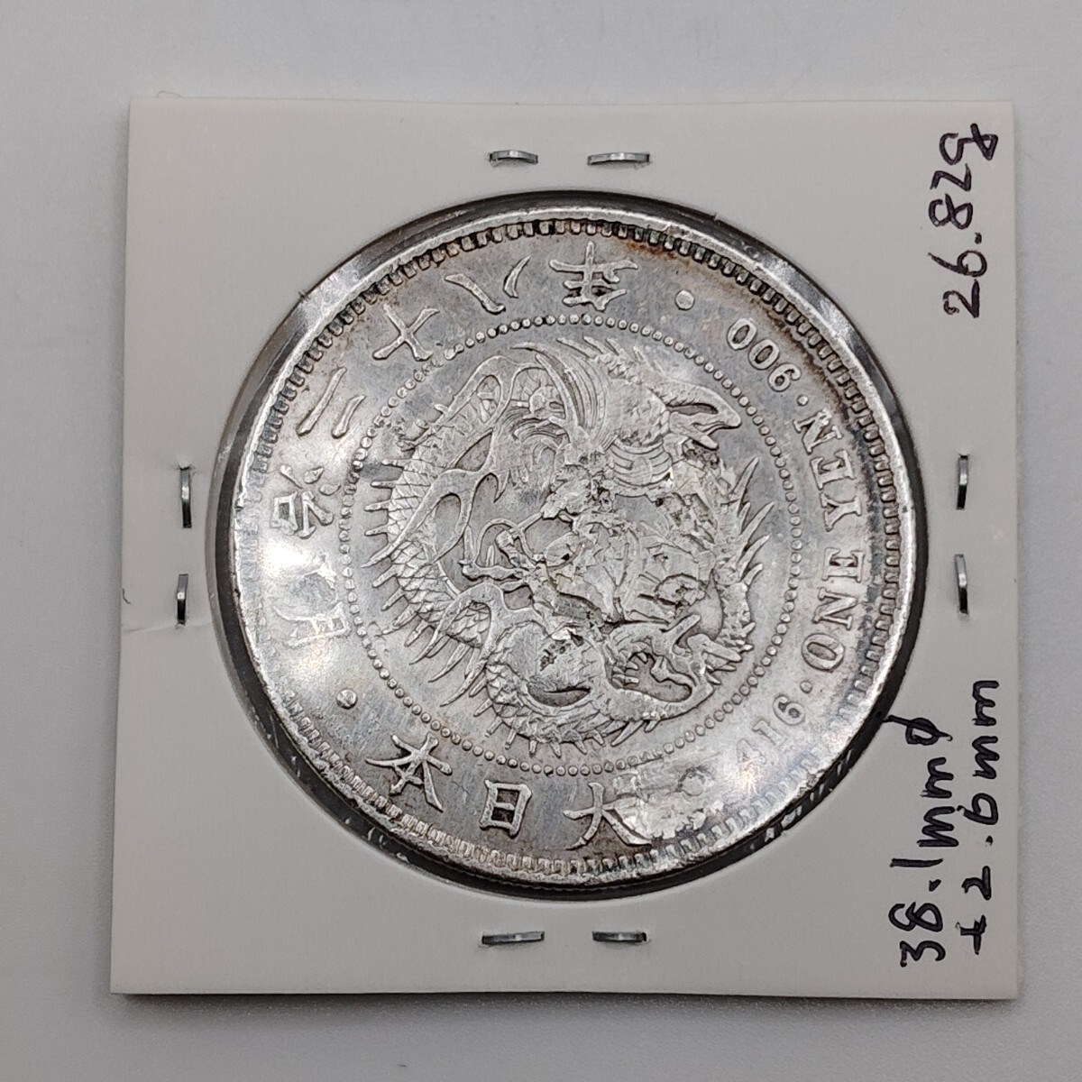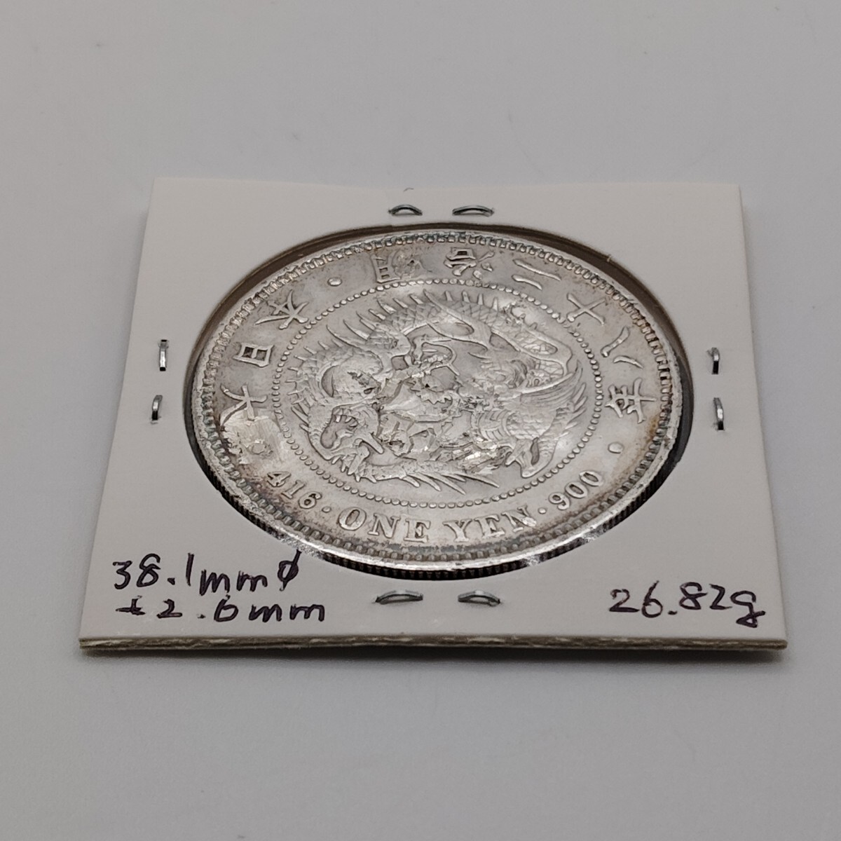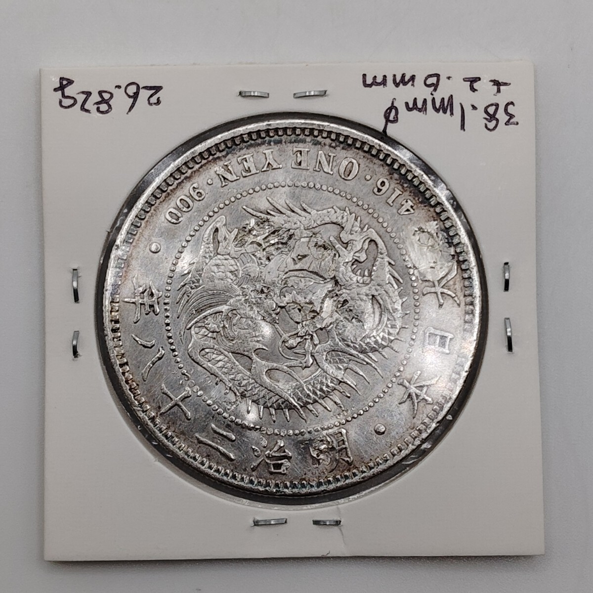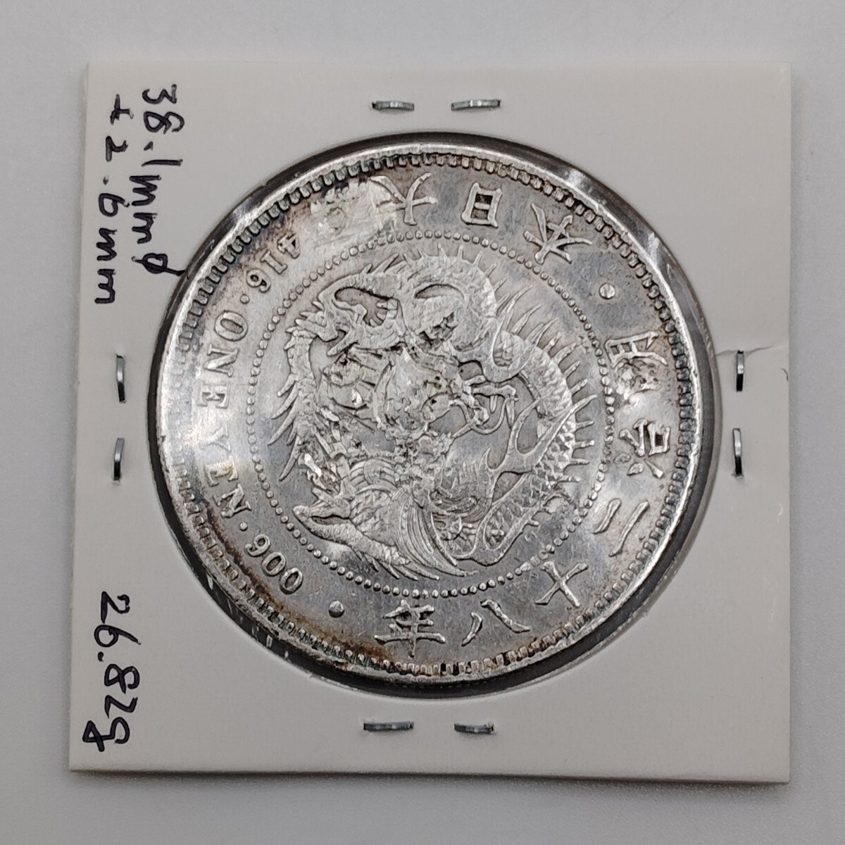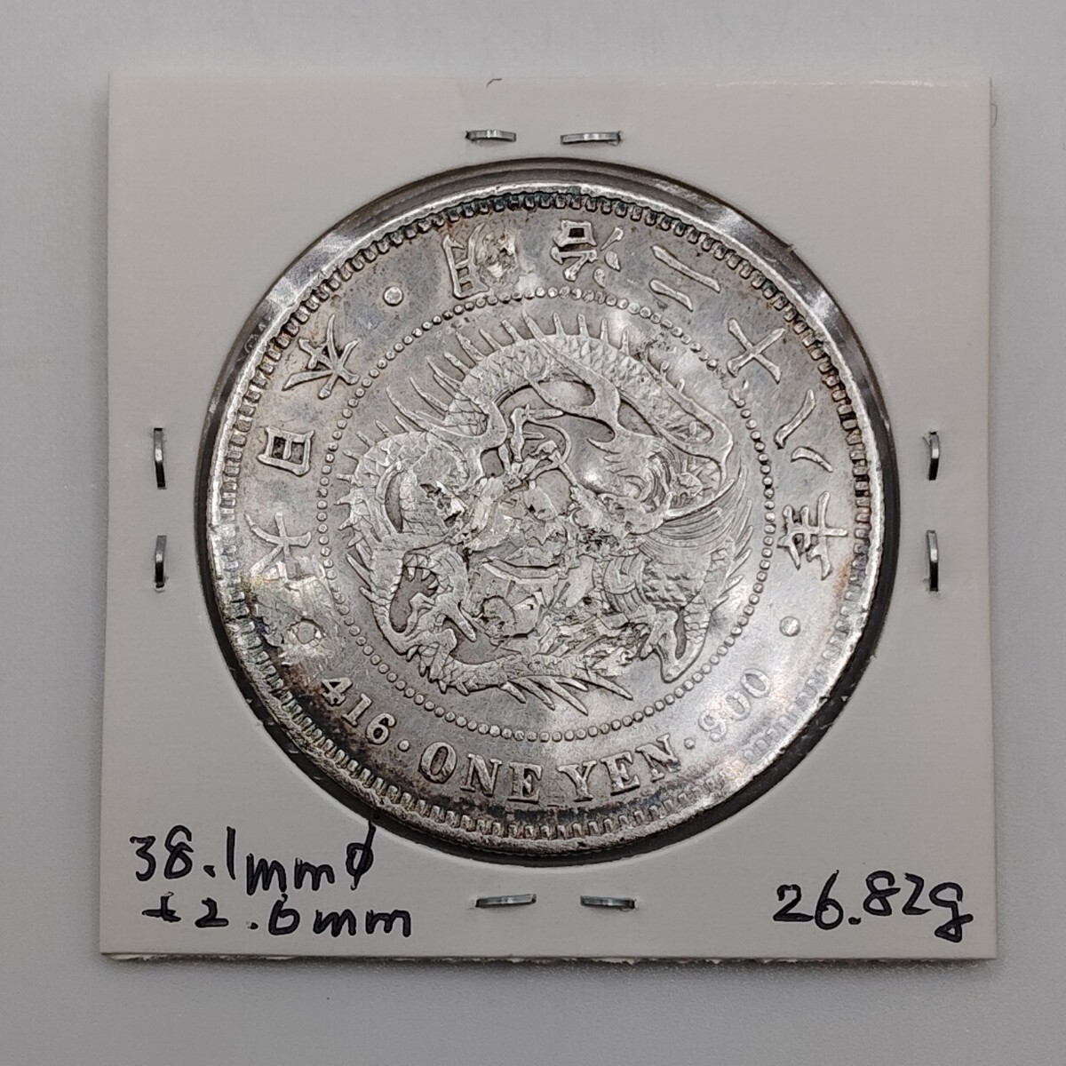 新一円銀貨 新一圓銀貨 新1円銀貨 明治28年 明治二十八年 大日本 416 ONE YEN 900 直径38.1mm 厚み2.6mm 重さ26.82g です。