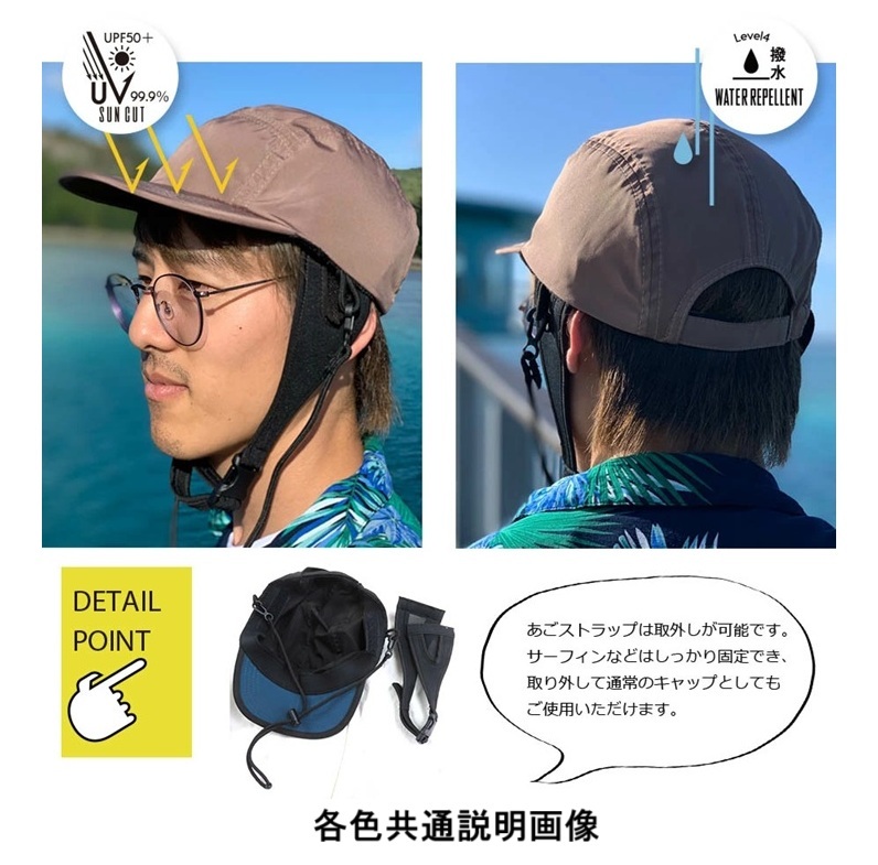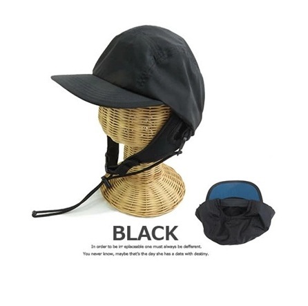 商品名 | 送料無料 脱着可能ストラップ撥水キッズサーフキャップ 黒 新品 |