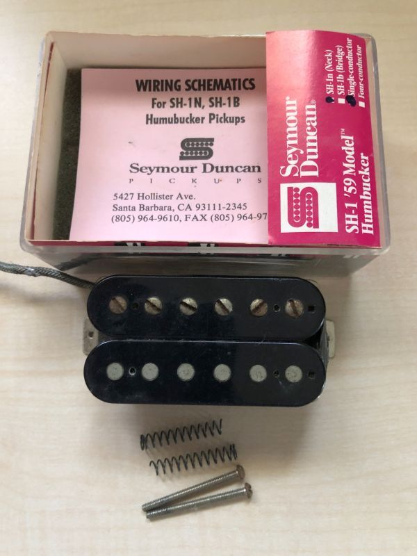 ご覧いただきありがとうございます。 セイモアダンカン SH-1B ’59Model(デカロゴ期:83~87年製)の中古です。 リード線は9センチくらいです。 使っていた時に不具合等は全くありませんでした。 出品前にも導通チェック済みです。 なお、箱は付きますが、蓋はありません。 ご質問などございましたらお気軽にお尋ね下さい。 | ||