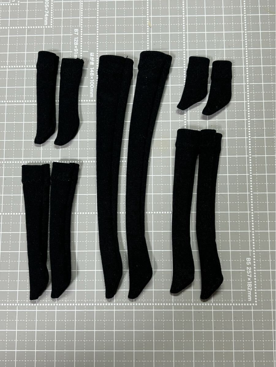 リカちゃん、ジェニー、ネオブライス、アイシードール 、オビツ27女性ボディ、ハッシュタグボディなどが着用出来る、薄手の化繊ソックス長さ違い、平置きで約125ミリ、85ミリ、65ミリ、45ミリ、25ミリの5足セットです。