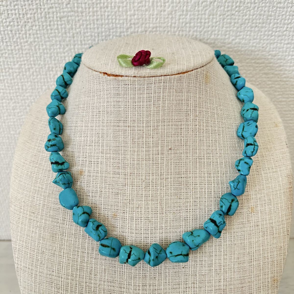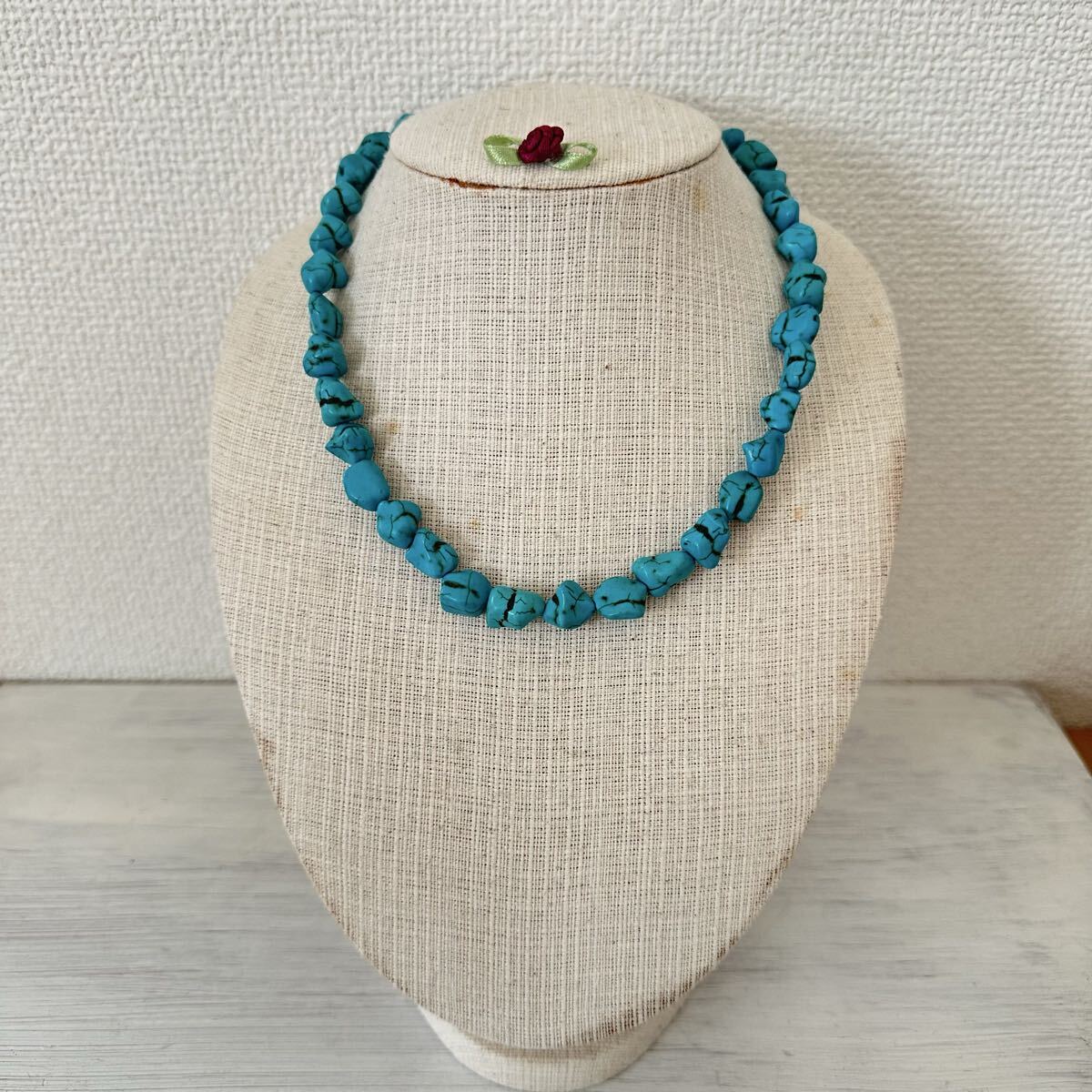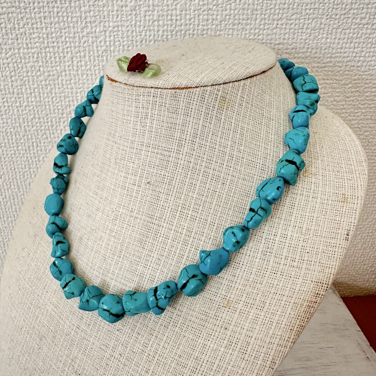 こちらのネックレスはターコイズブルーは高級感溢れるロック型のネックレスです。