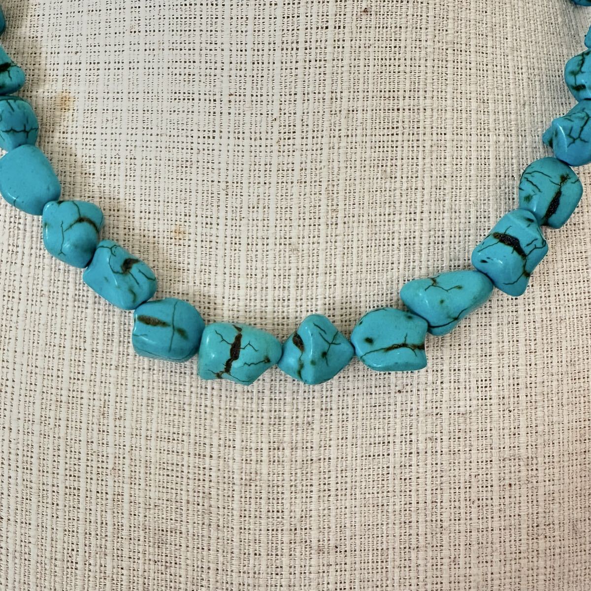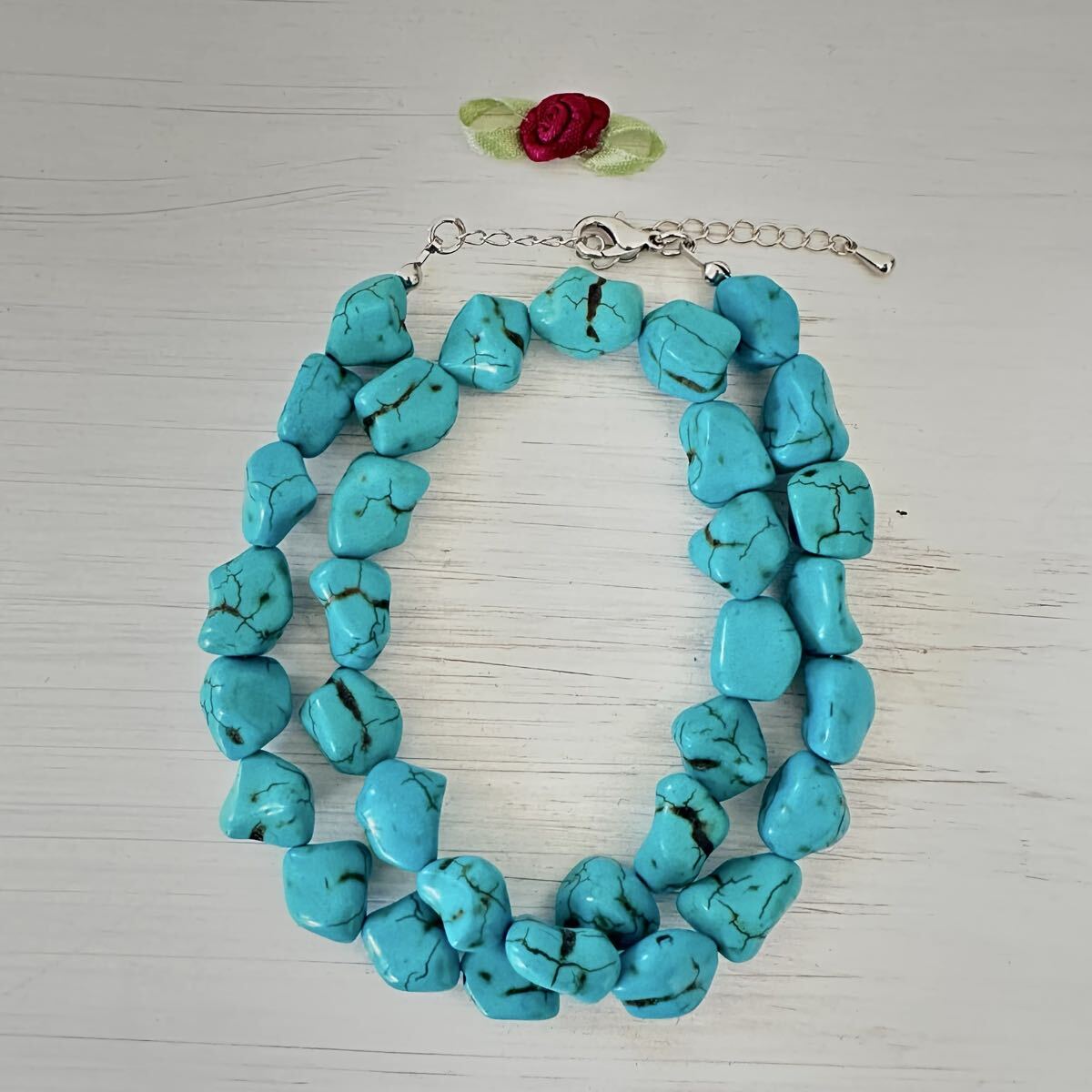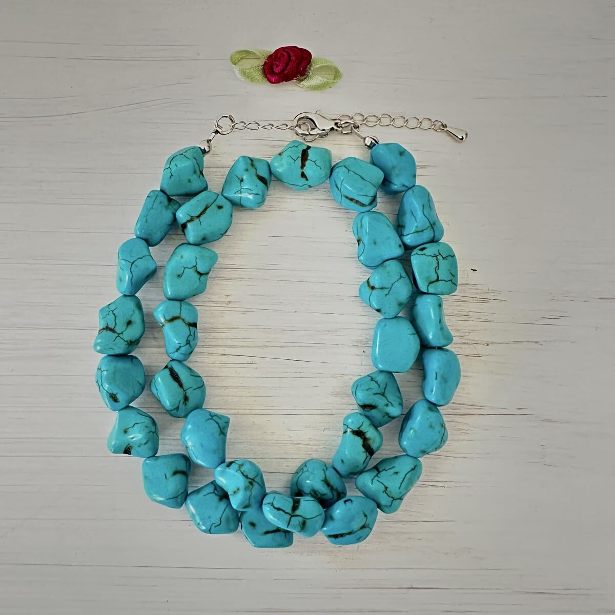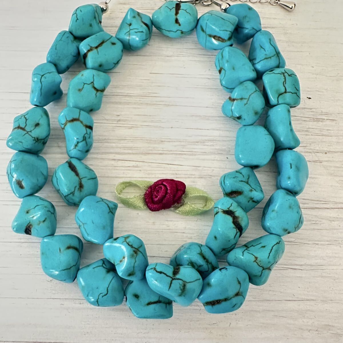 こちらのネックレスはターコイズブルーは高級感溢れるロック型のネックレスです。