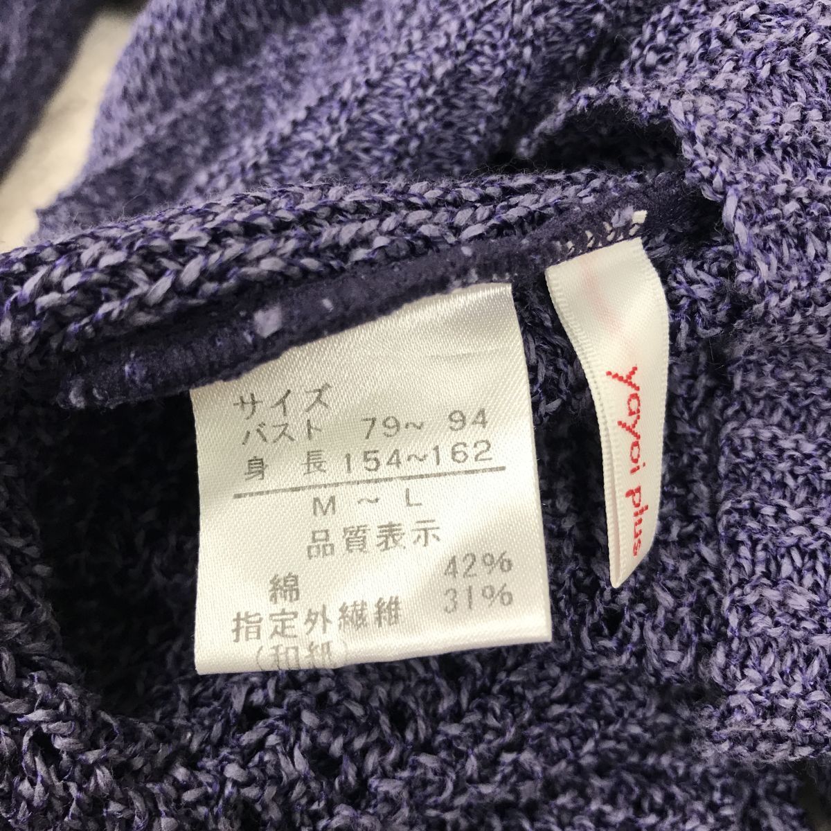 2K1203-R◆日本製 yayoi plus ヤヨイプラス ペーパーカーディガン◆サイズM-L レディース 婦人 トップス 透け感 春夏 パープル 紫