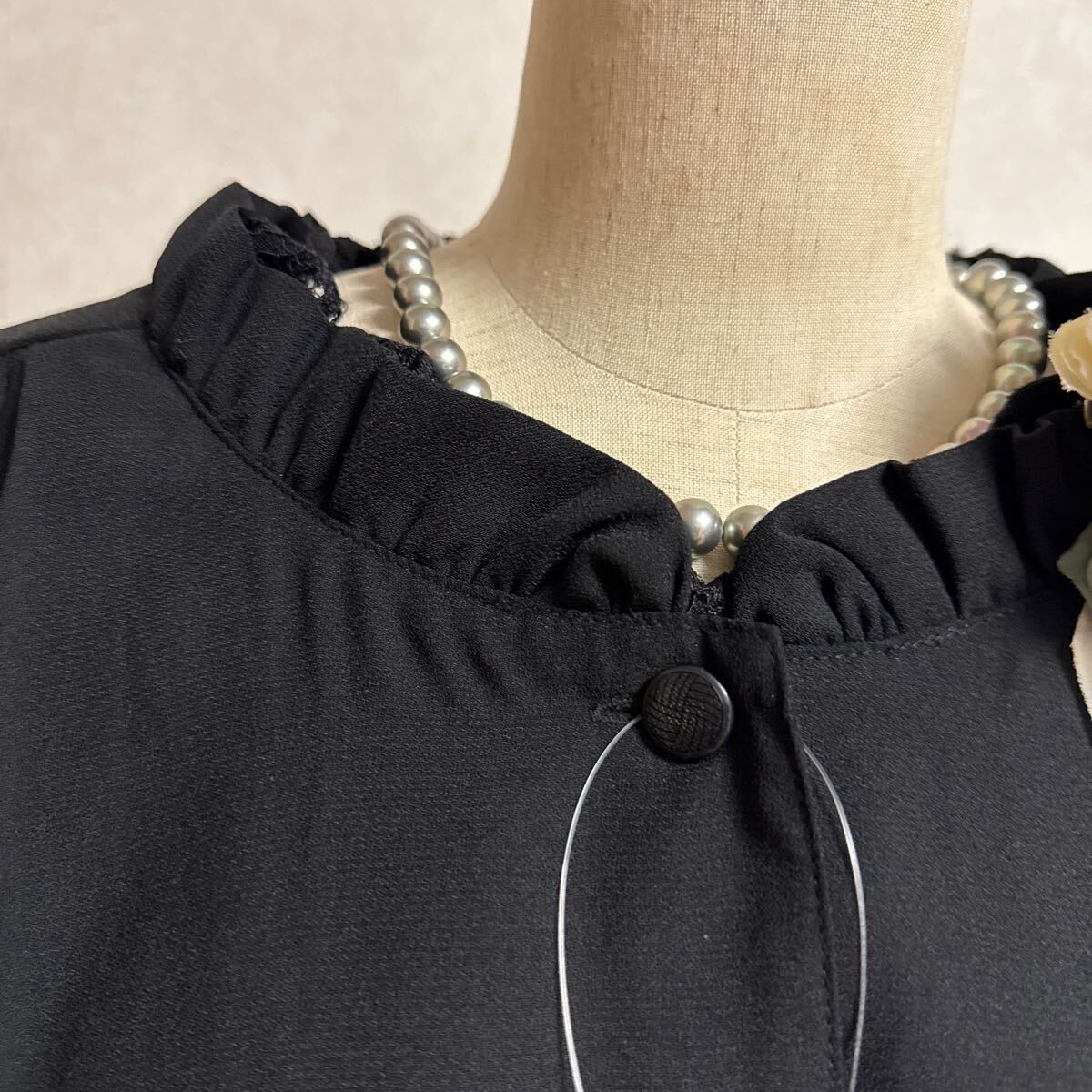 T542 *4L 新品ウェスト楽々フォーマル、パンツ、スーツ黒系 セットアップ 体型カバー 礼服 喪服