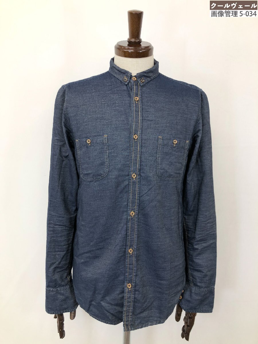 美品【BERNA ベルナ】コットン100% ソフトデニム生地 長袖 カジュアルシャツ (メンズ) sizeS インディゴブルー系 ◇17MK6113◇