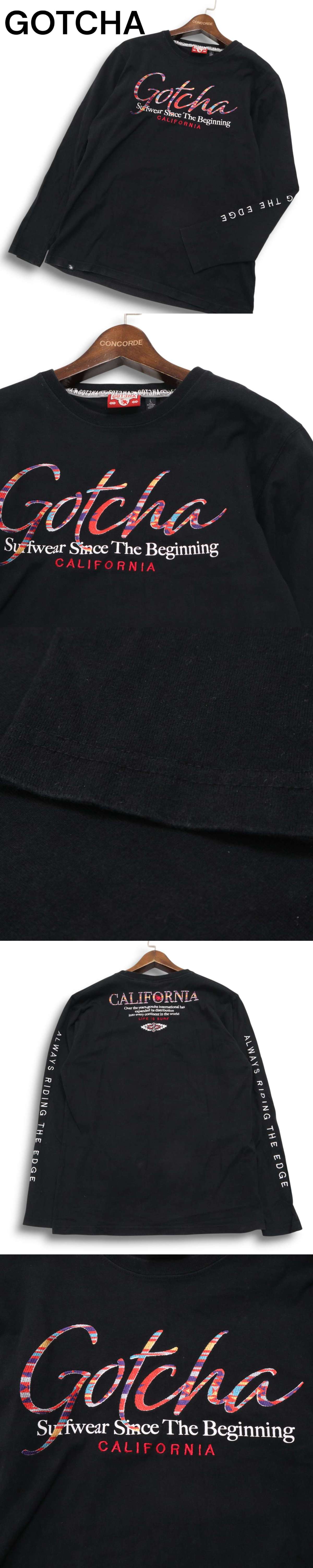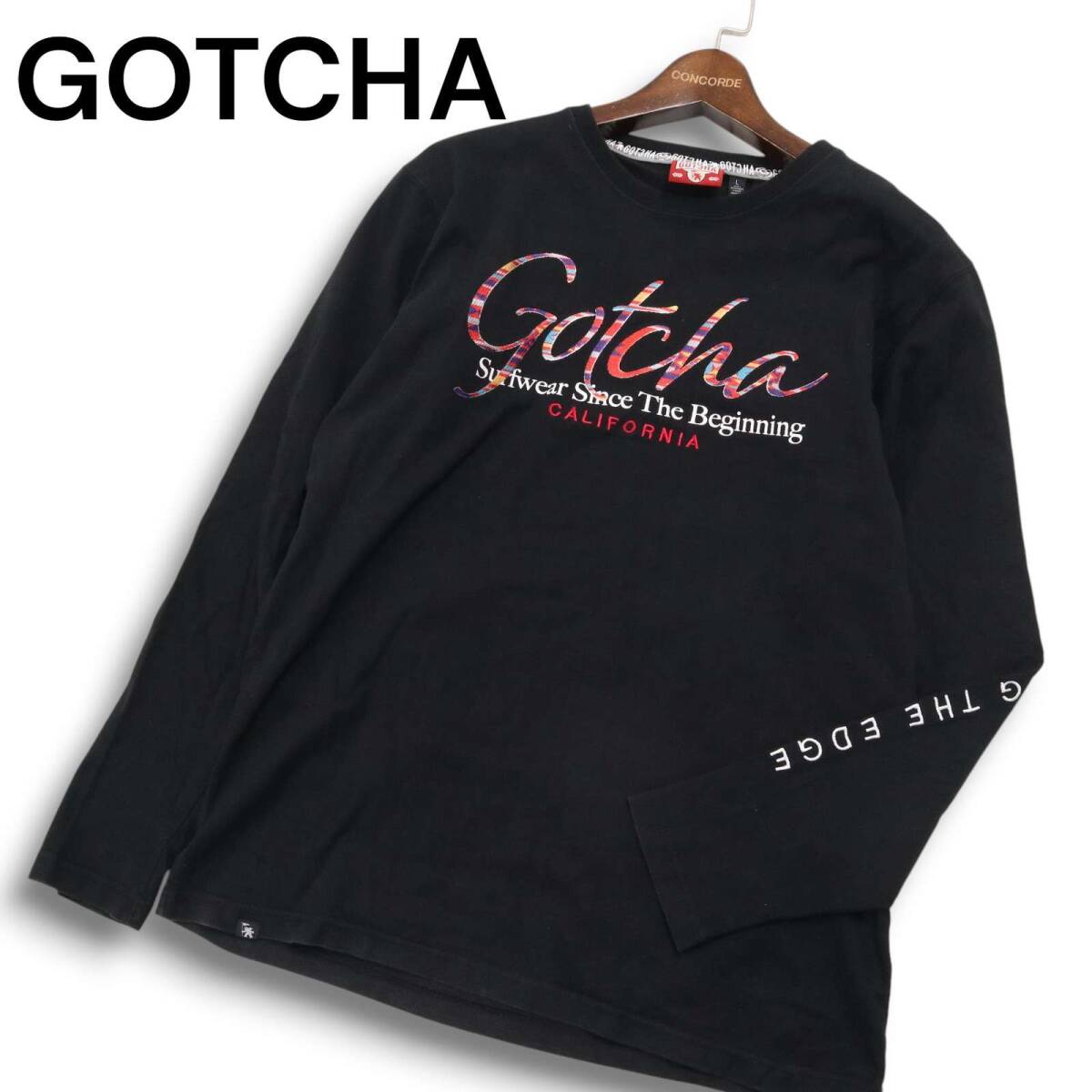 GOTCHA ガッチャ 通年 ロゴ★ 長袖 グラフィック カットソー ロンTシャツ Sz.L メンズ 黒 サーフ