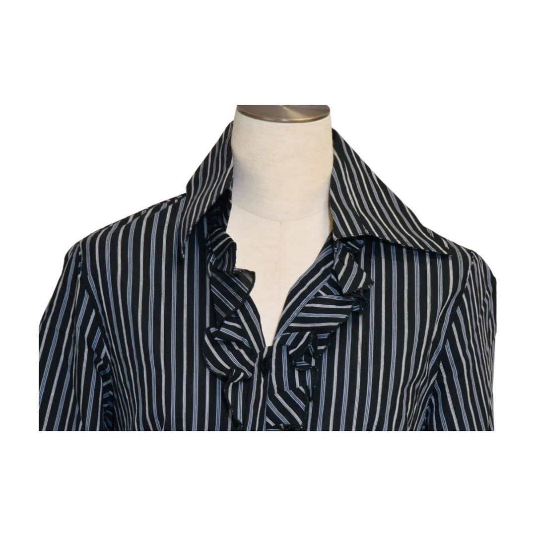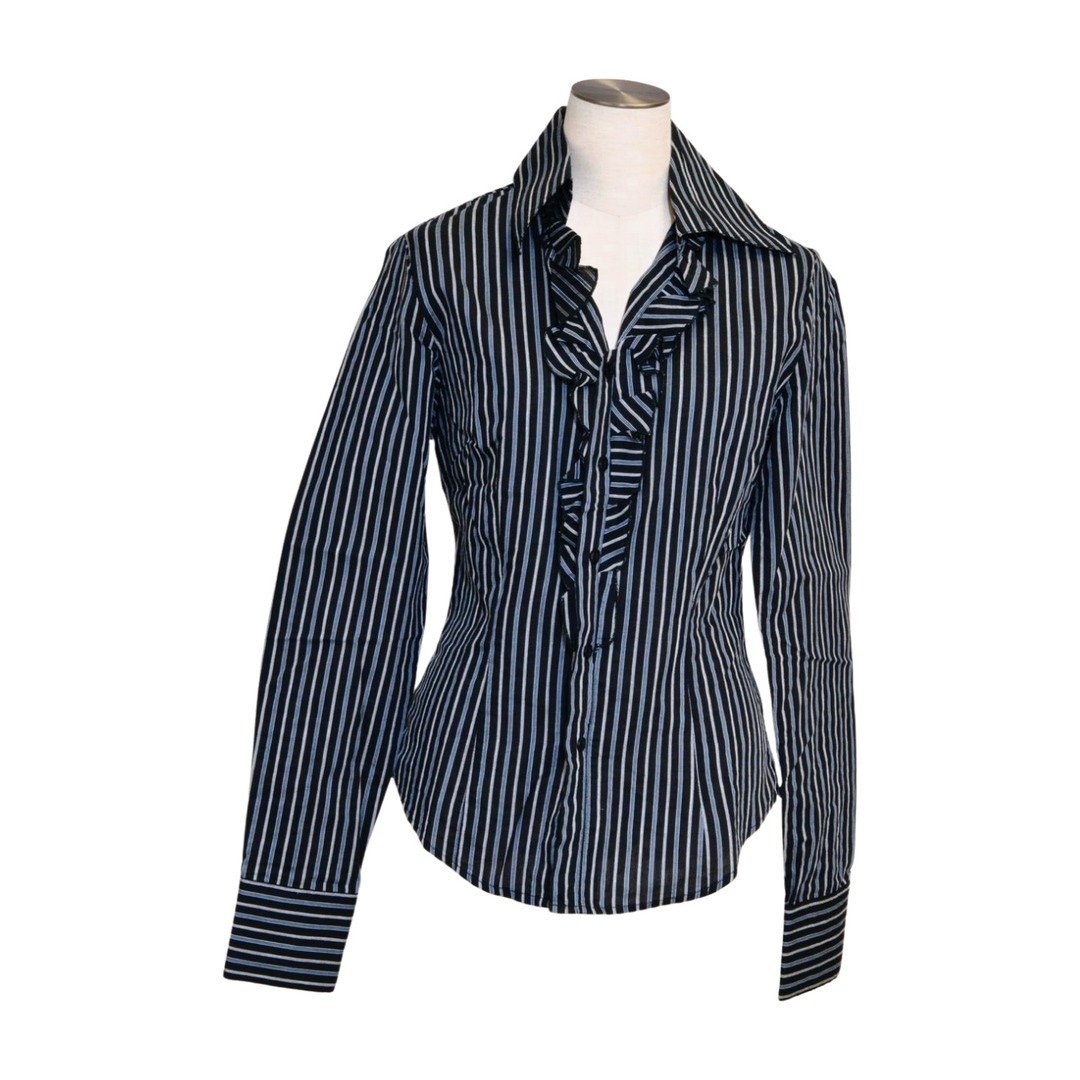 | 替えボタン×1 ナラカミーチェ NARACAMICIE ストライプシャツ シャツ ブラック サイズ 0 コットン イタリア製 | |||||||||||||