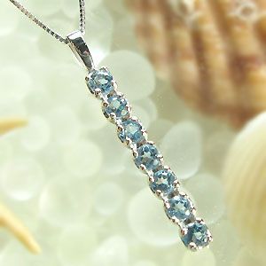 11月誕生石ブルートパーズをを7石使用した、10金製ラインタイプのペンダントネックレスです。