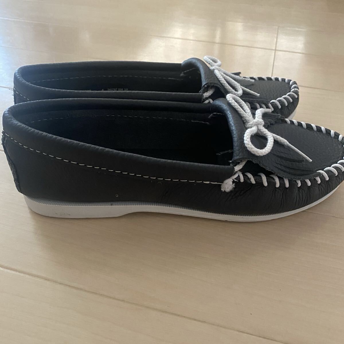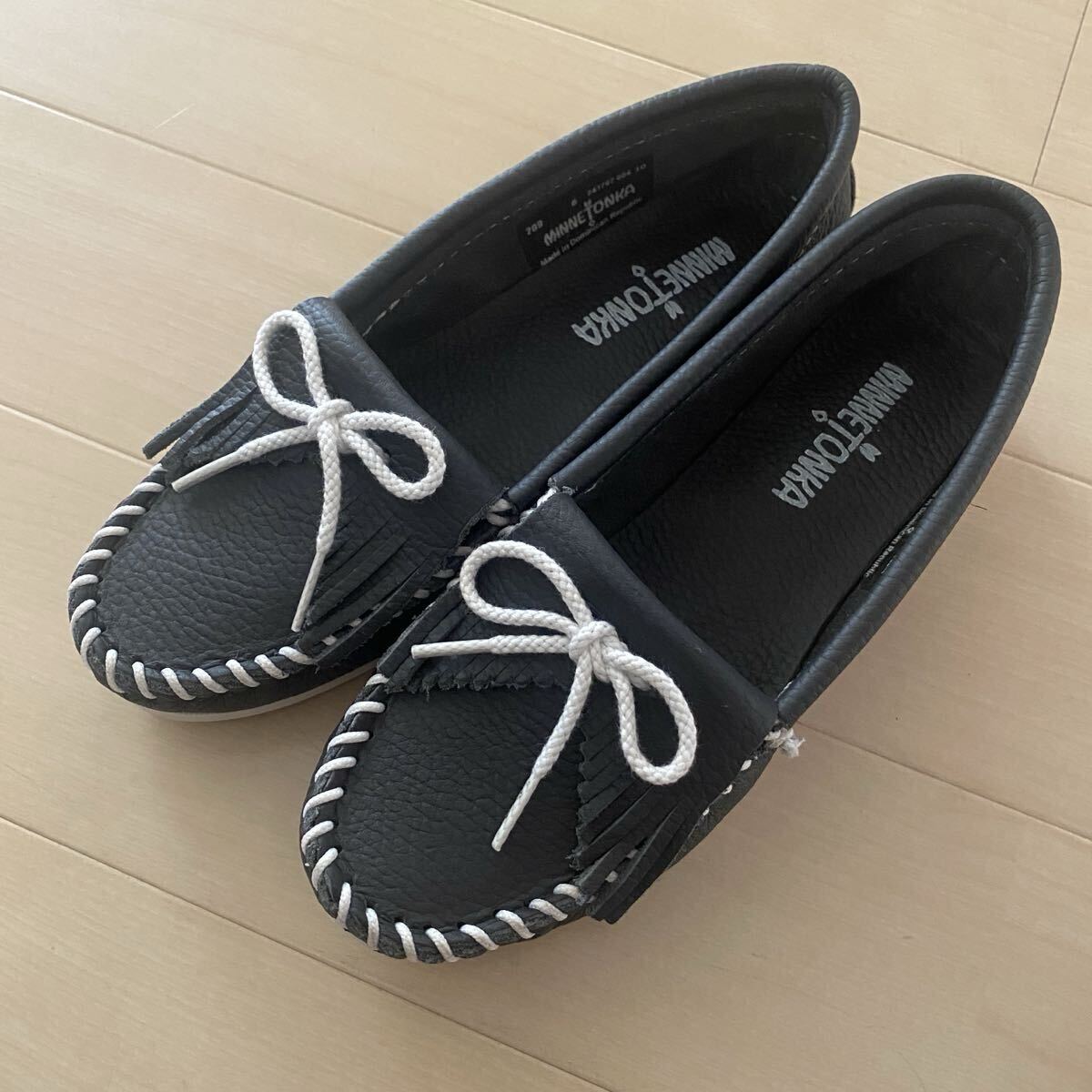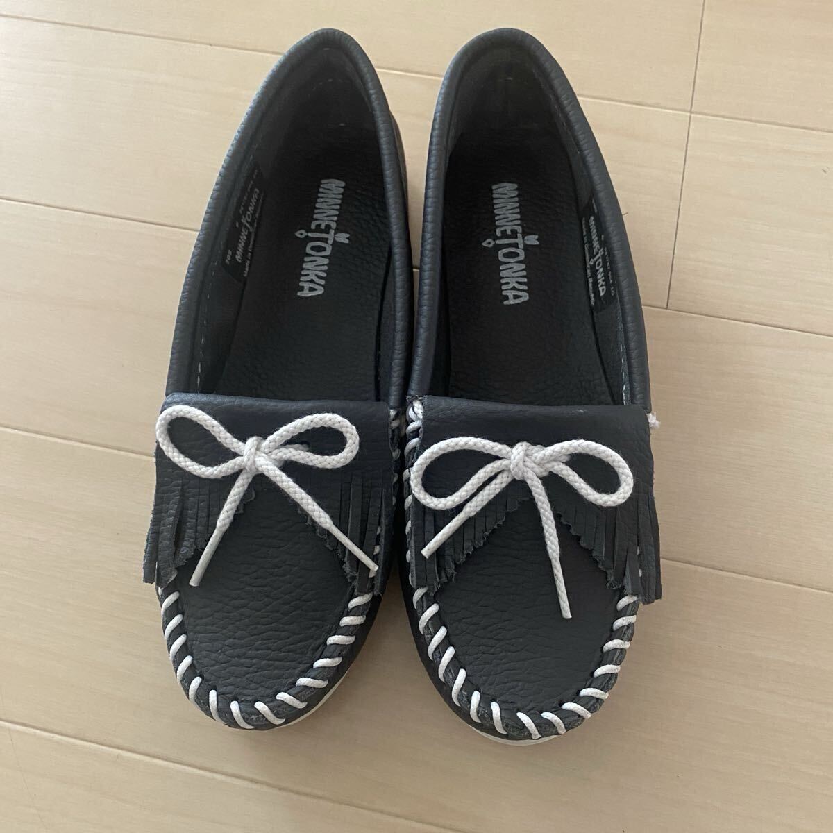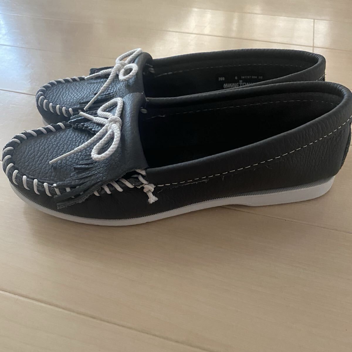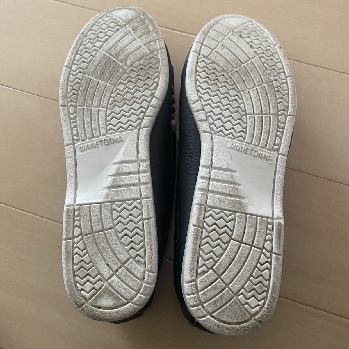 ミネトンカ MINNETONKA モカシン 6サイズ 23cm ネイビー レディース レザー 送料無料 デッキシューズ 本革