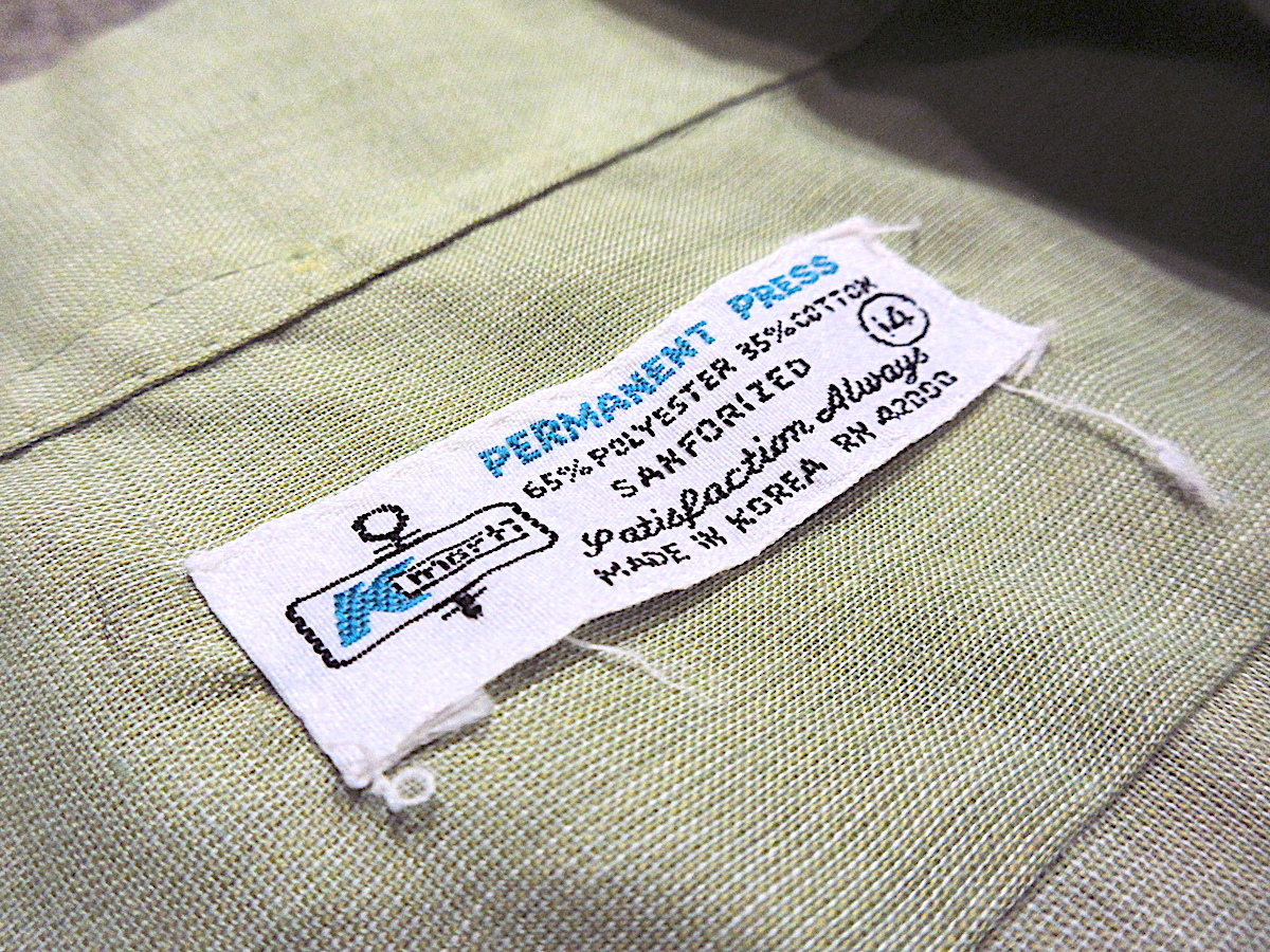 衿芯入り、ラウンドカット、パーマネントプレス、SANFORIZED、MADE IN KOREA